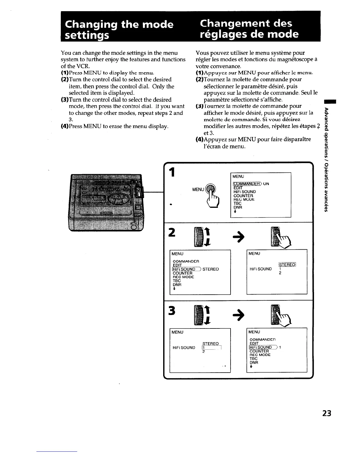 Sony EVO-250 - Mode Settings; Changing the Mode Settings