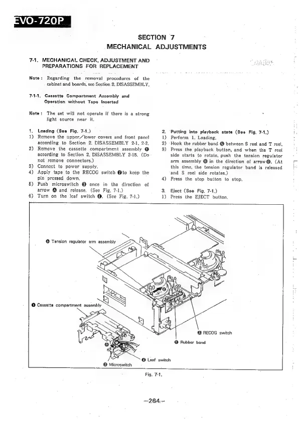 Sony EVO-720P - Mechanical, Adjustments; 7-1, Mechanical Check, Adjustment and; Operation Without Tape Inserted