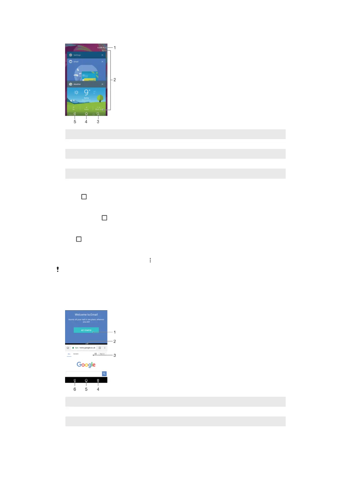 3 Recent apps key – Open the recently used applications window and the favourites bar