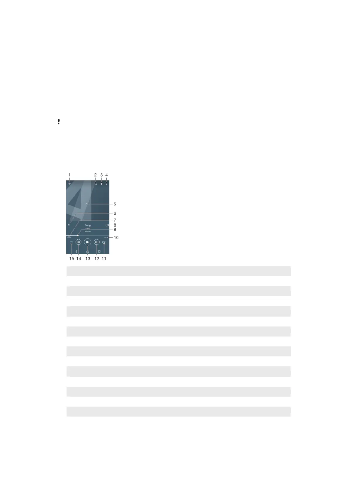 14 Tap to go to the previous song in the play queue, touch and hold to rewind within the current song