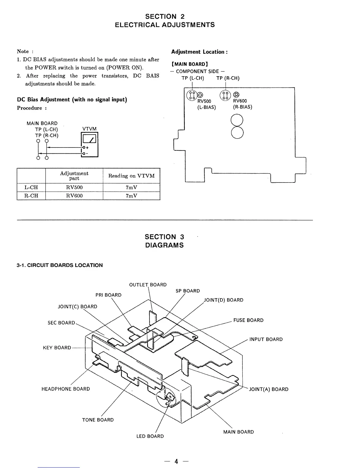 Sony F519R - Electrical Adjustments; DC Bias Adjustment Procedure; Diagrams and Schematics; Circuit Board Locations