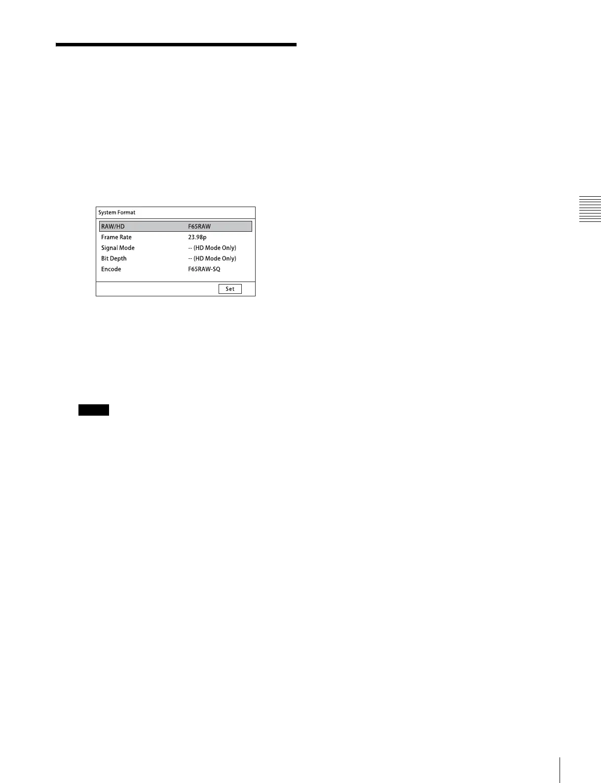 In F65RAW mode, “F65RAW-SQ” or “F65RAW-Lite”