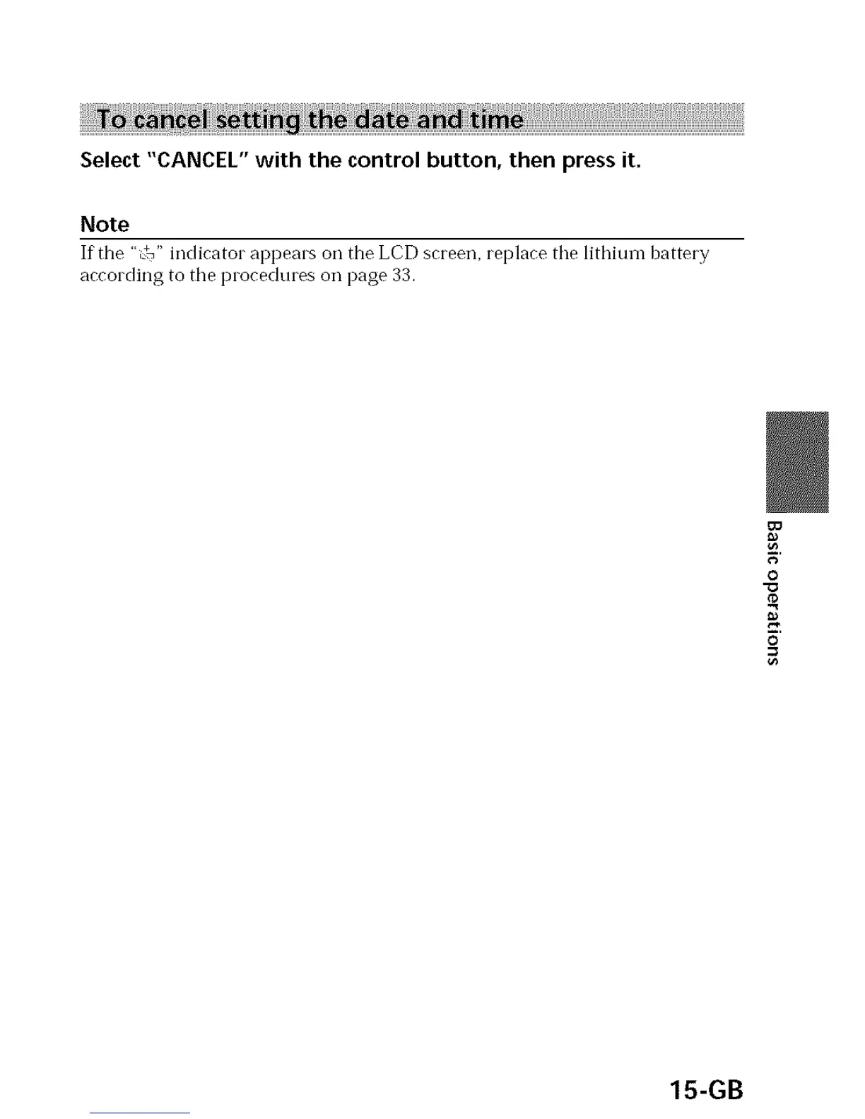 If the "-+_"indkator appears on the LCD screen, replace the lithium battery