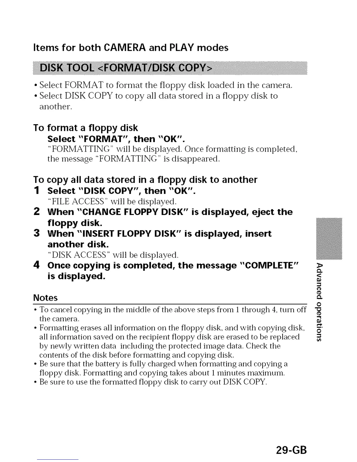 • Formatting erases all information on tile floppy disk, anct with copying disk, _"_