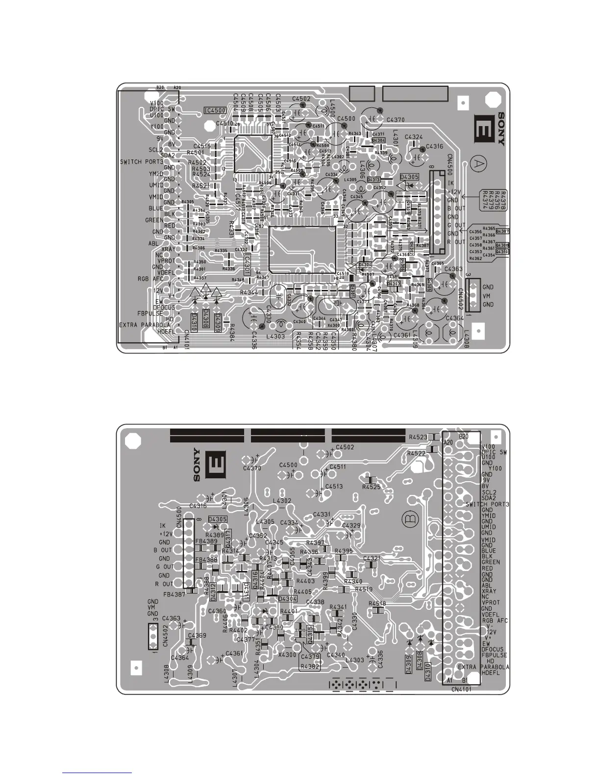 Sony FD Trinitron KV-29FX65E - E [PRINTED WIRING BOARD (A side)]; E [PRINTED WIRING BOARD (B side)]