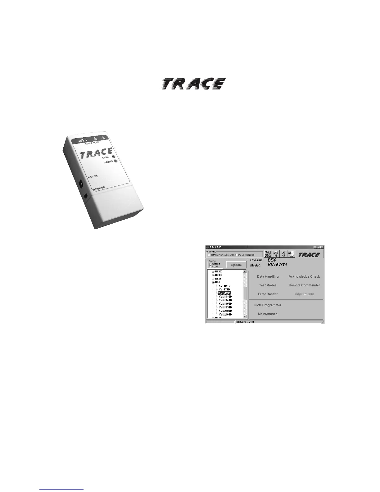 TV Data Handling software (9-948-340-50), but Error Reader and IR functions can only be accessed with the TRACE interface.