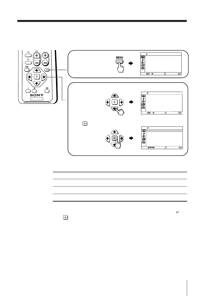 • The MENU, t and 2 +/– buttons on the top control panel can also be used for the