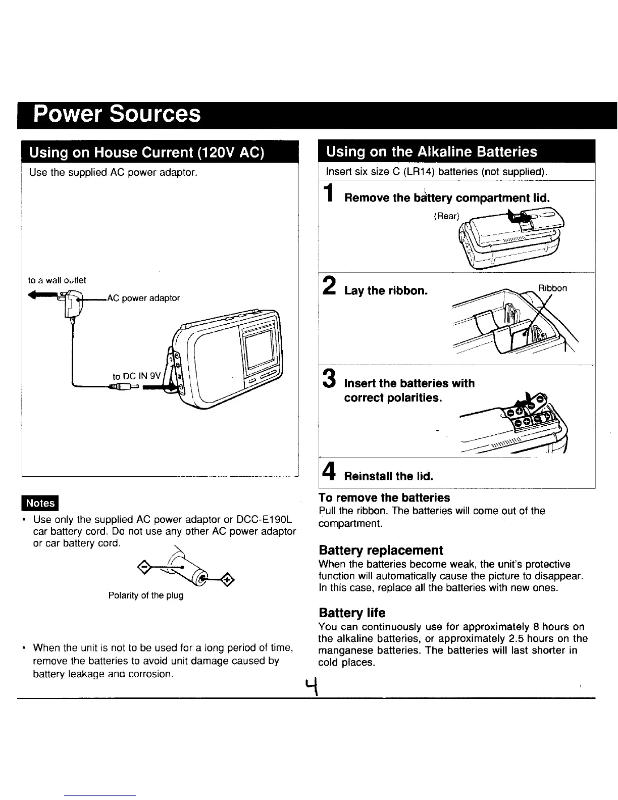 Sony FDL-370 - Powering the Unit; AC Power Operation; Battery Power Operation