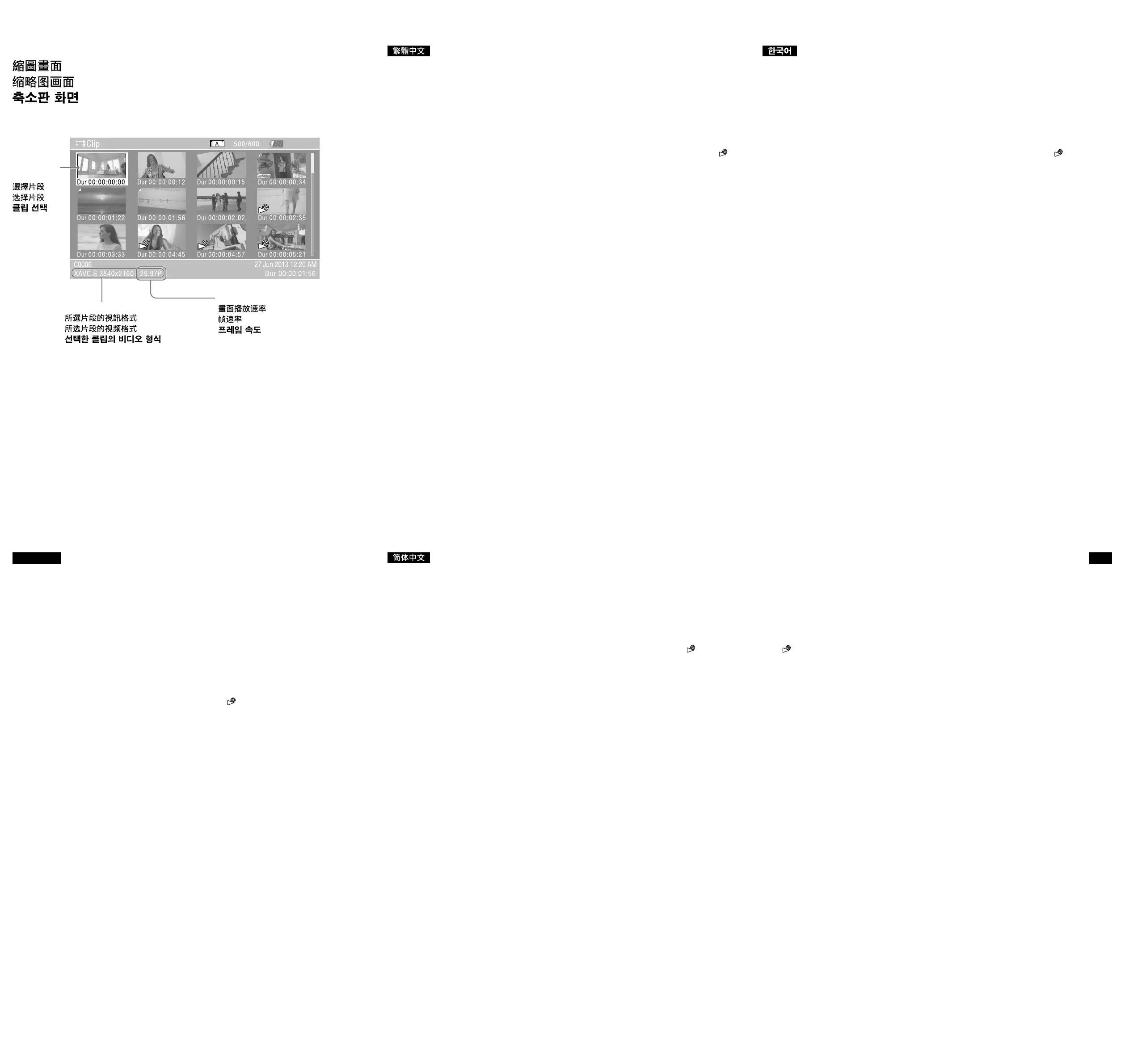 當[Rec Format]沒有設定為和錄製⽚段的視訊格式相同的畫⾯播放速率時,畫⾯上會顯⽰ 記