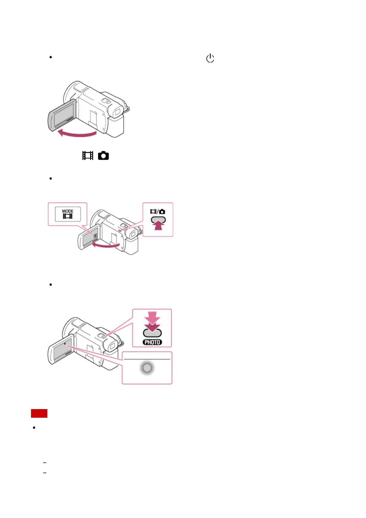 2. Press the / (Shooting Mode) button to select the photo recording mode (models