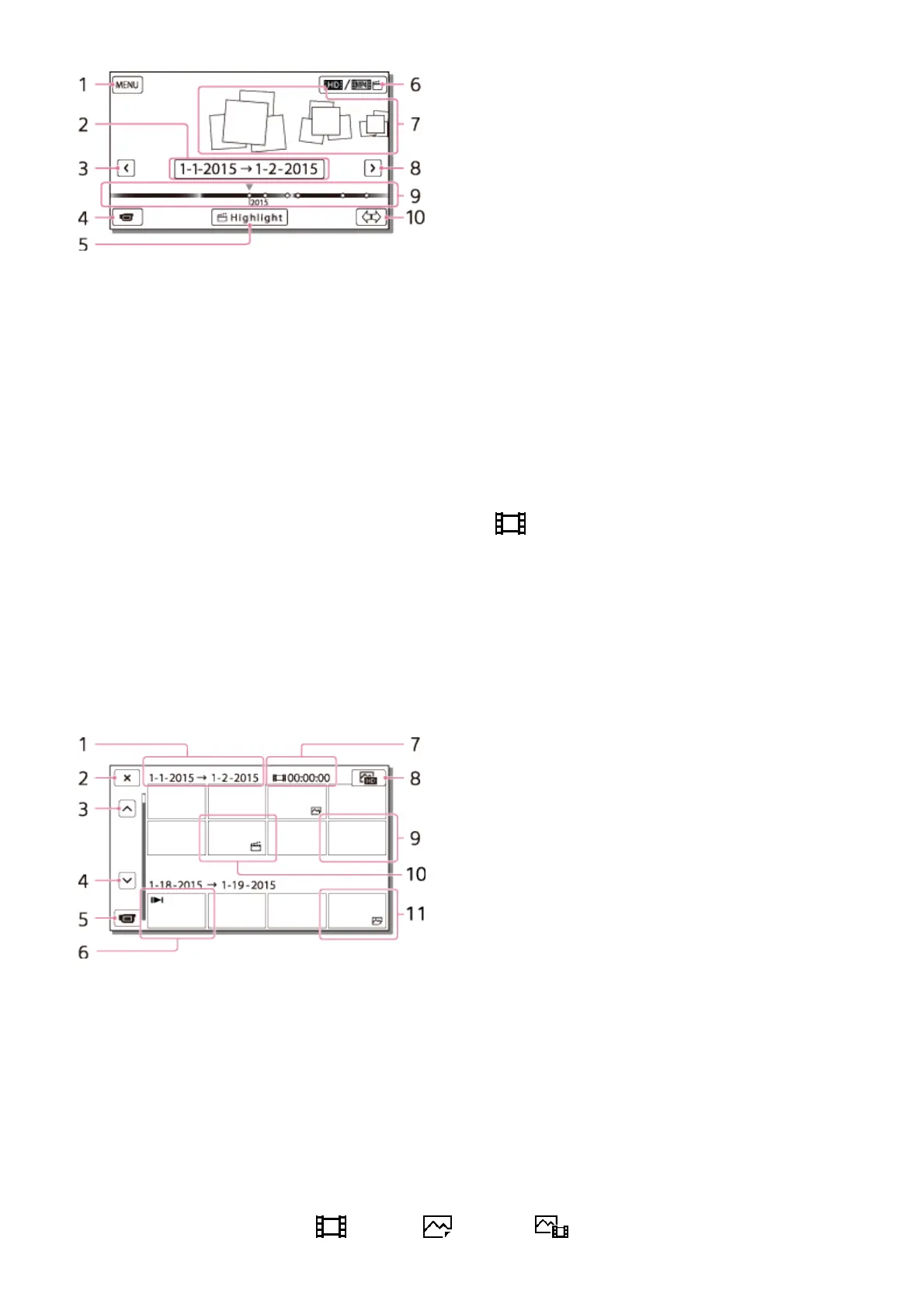 8. To switch between the movie/photo playback screen (VISUAL INDEX)