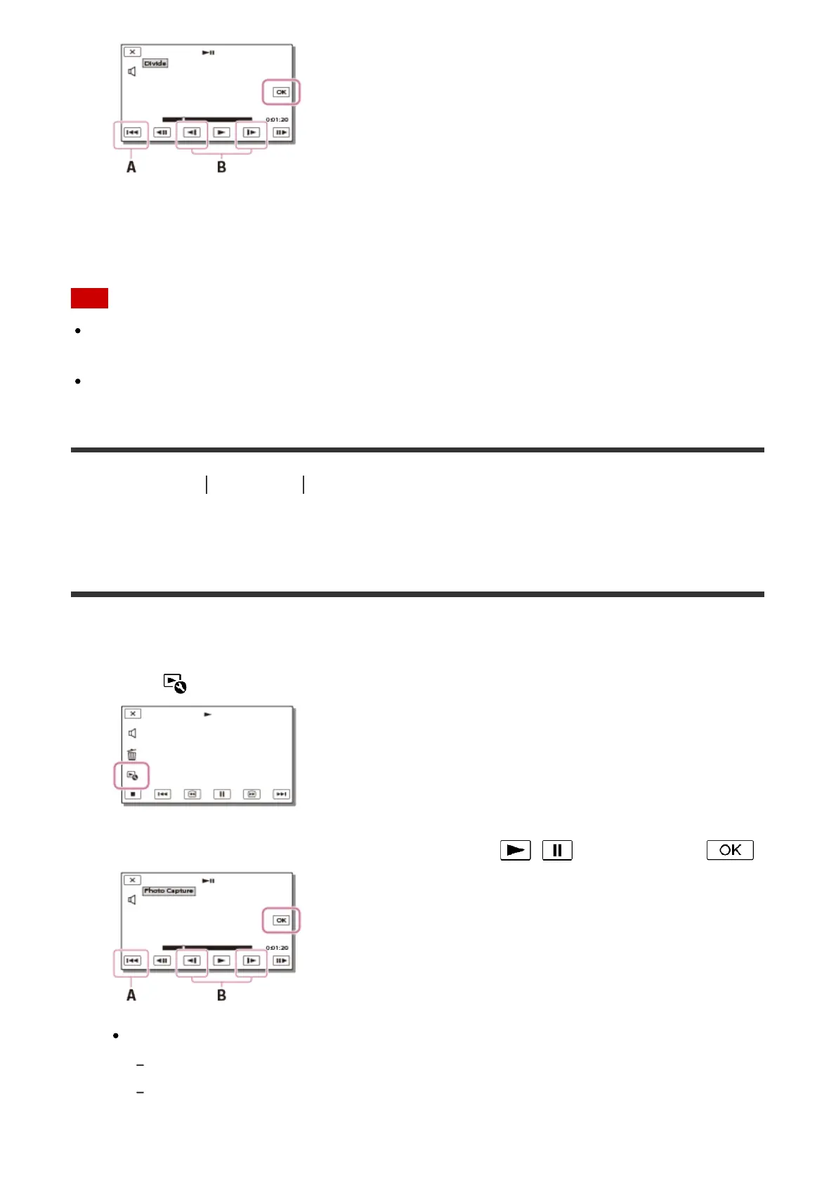 1. Select - [Photo Capture] that appears on the playback screen of a movie.