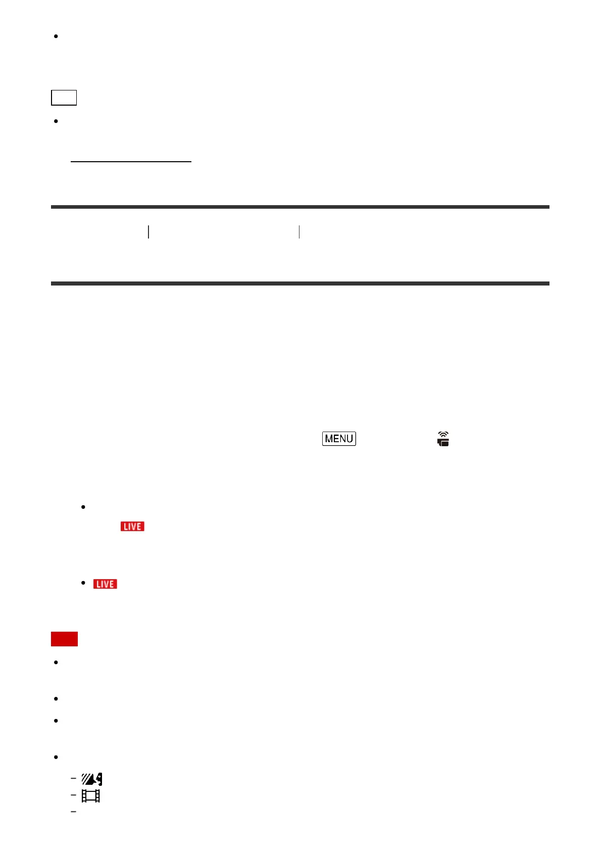 1. On the movie/photo recording screen, select - [Wireless] - [ Function] - [Live