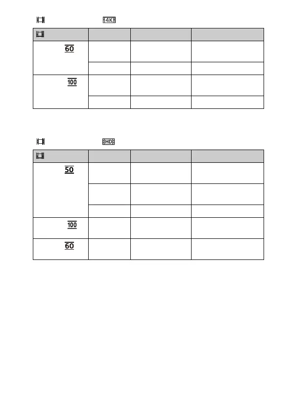 REC Mode Frame rate Bit-rate Actual movie format