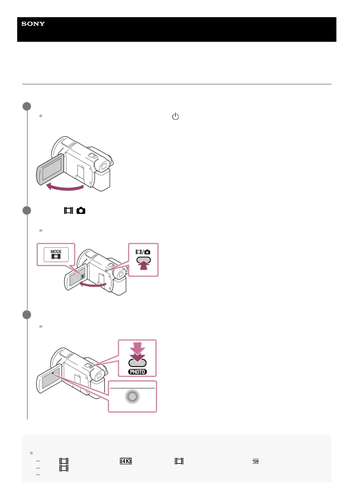Press the / (Shooting Mode) button to select the photo recording mode (models with the