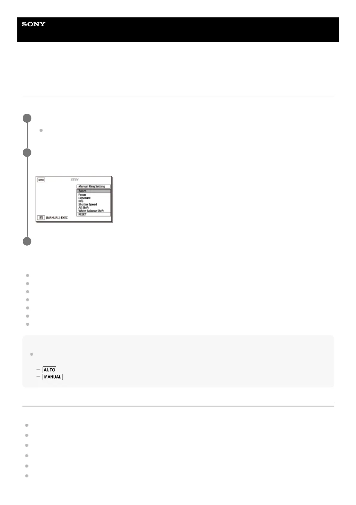 Controlling the image settings manually with the MANUAL ring (models with the viewfinder)