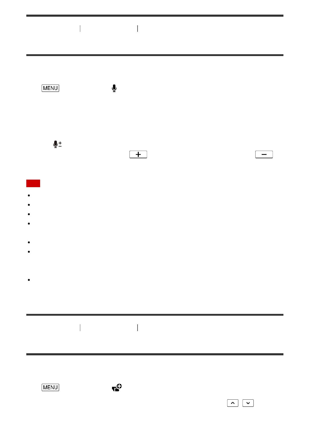 1. - [Camera/Mic] - [ Microphone] - [Audio Rec Level] - desired setting.