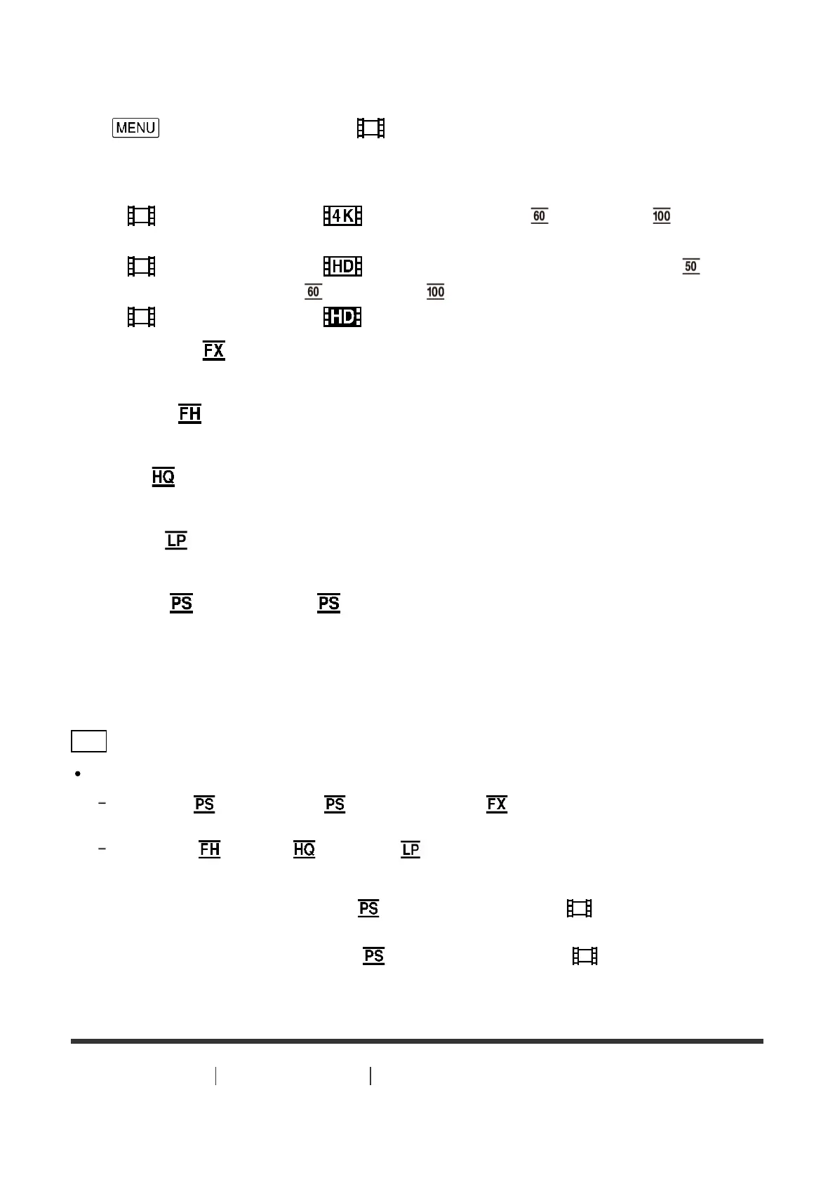 When [ File Format] is set to [ XAVC S 4K], [60Mbps ] or [100Mbps ] can be