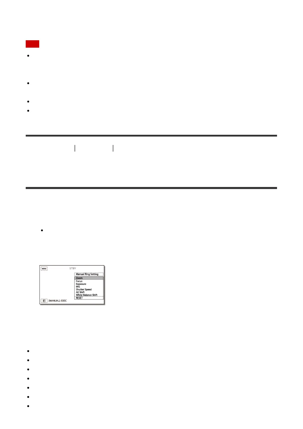 The MANUAL ring is not available while using the Multi Camera Control function.