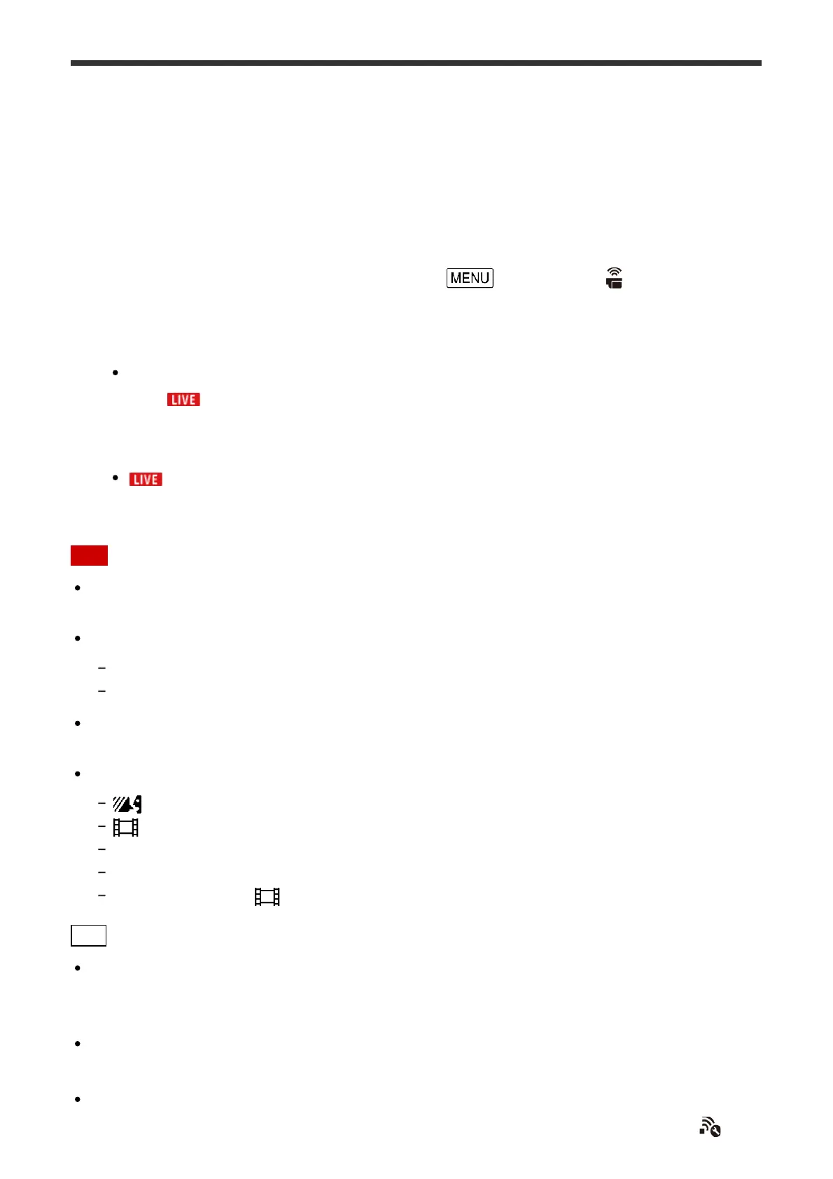 1. On the movie/photo recording screen, select - [Wireless] - [ Function] - [Live