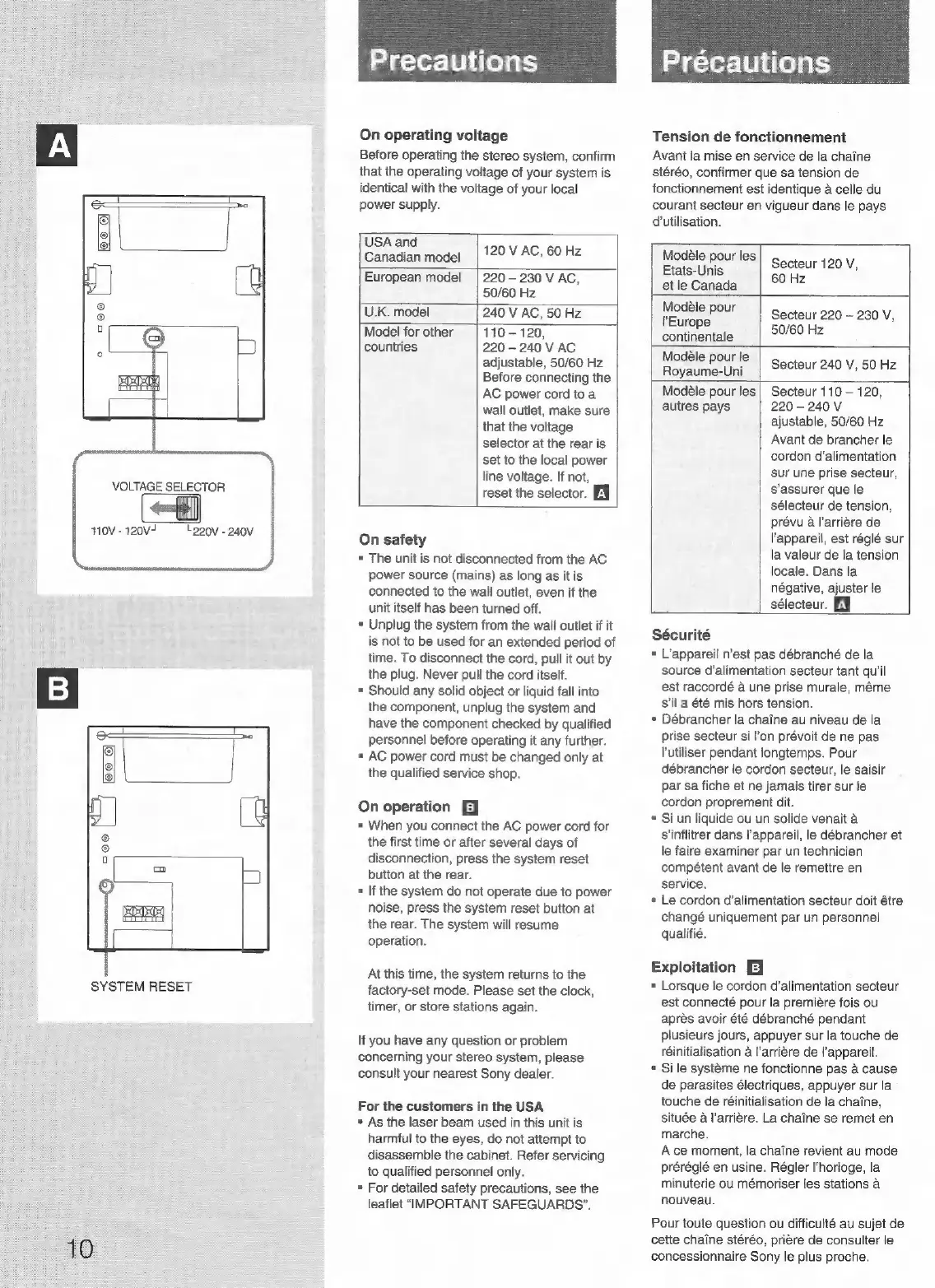 Sony FH-B150 - Precautions; On operating voltage; On safety; On operation