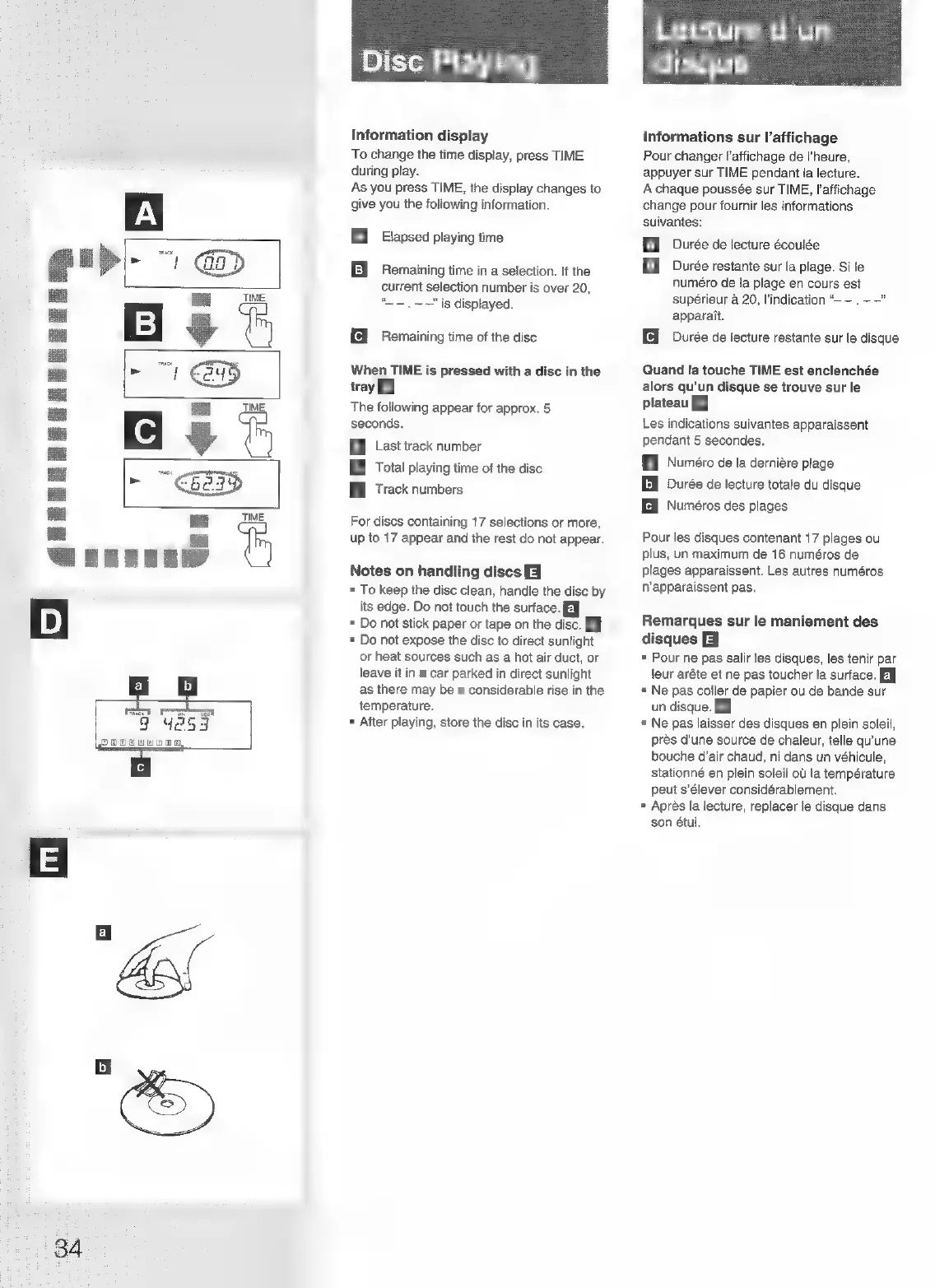 Sony FH-B150 - Disc Playing; Information display; Notes on handling discs