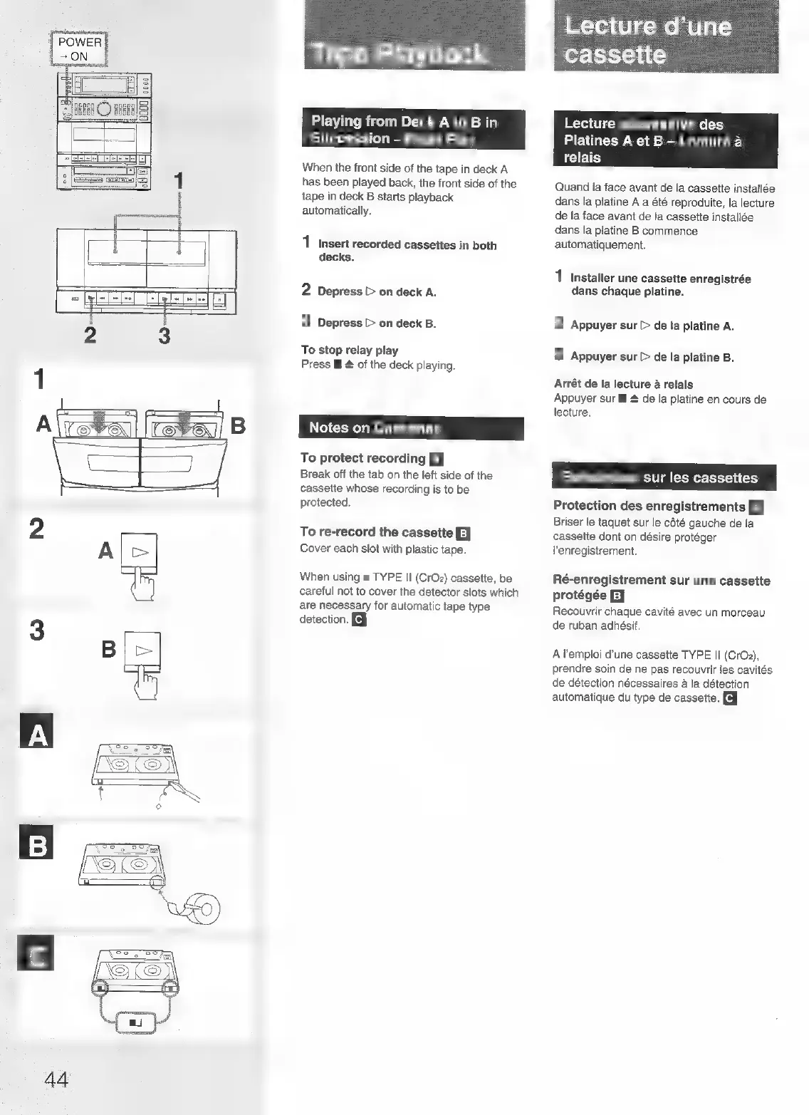 Sony FH-B150 - Tape Playback; Playing from Deck A to B in Sequence; To stop relay play; Notes on Cassettes