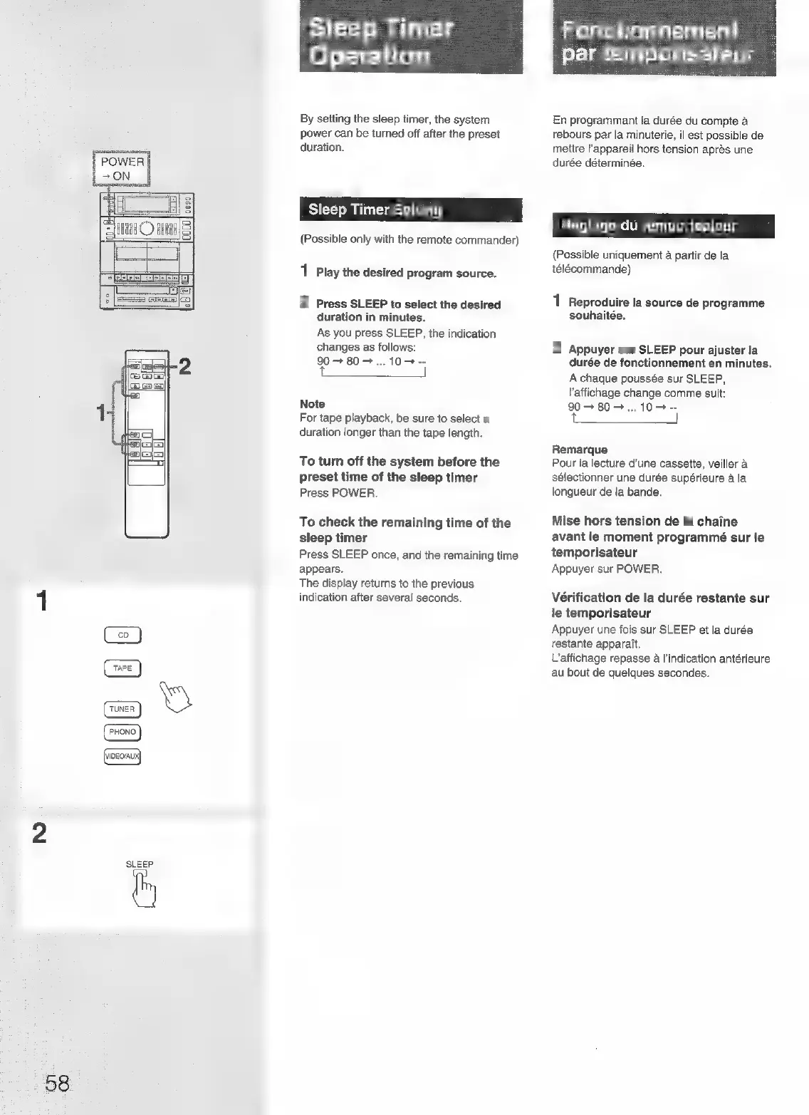 Sony FH-B150 - Sleep Timer Operation; Sleep Timer Setting; Note; Manually turn off the system