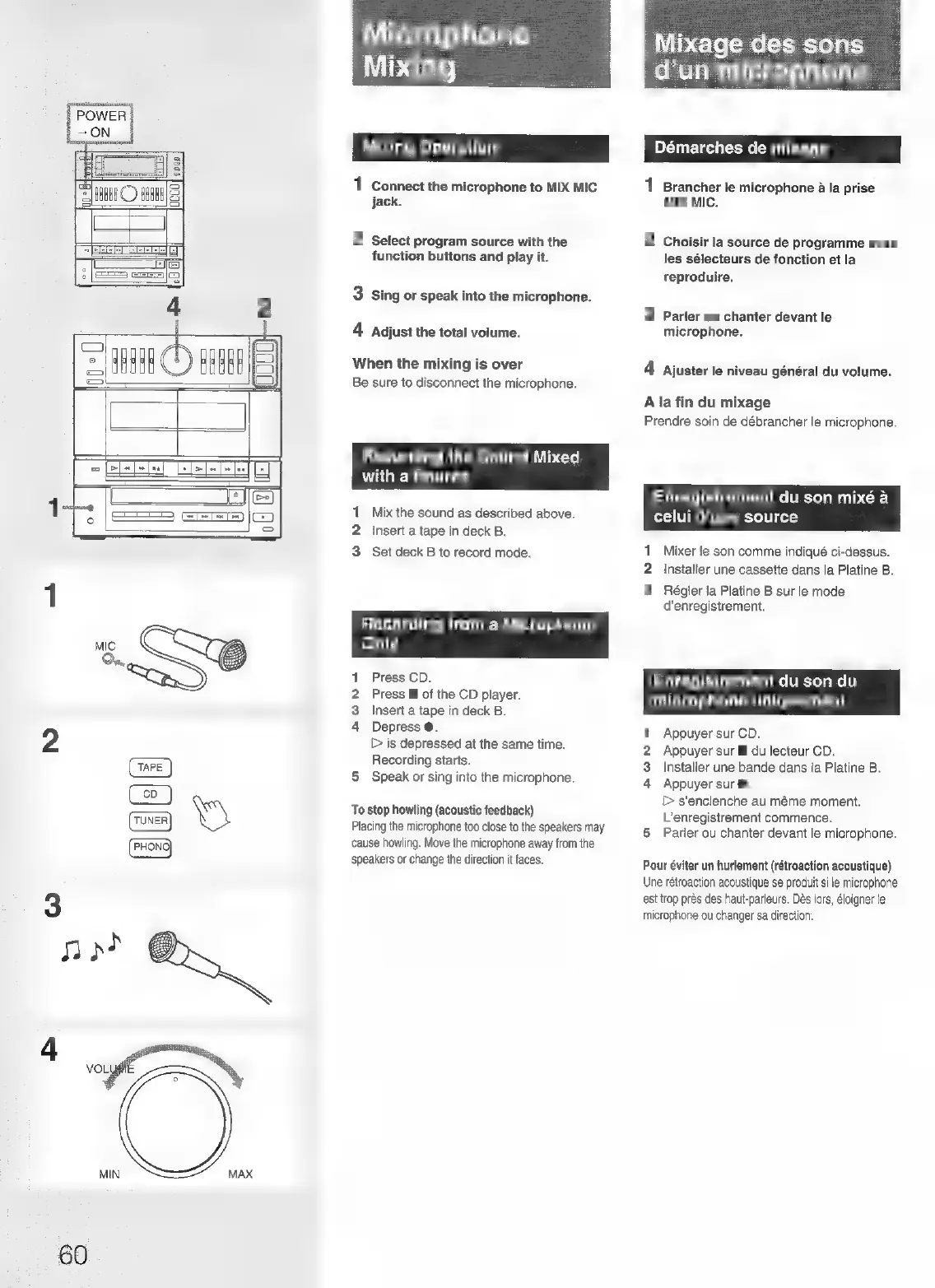 Sony FH-B150 - Microphone Mixing; Microphone Operation; Recording the Mixed Sound with Music; Recording from a Microphone Input