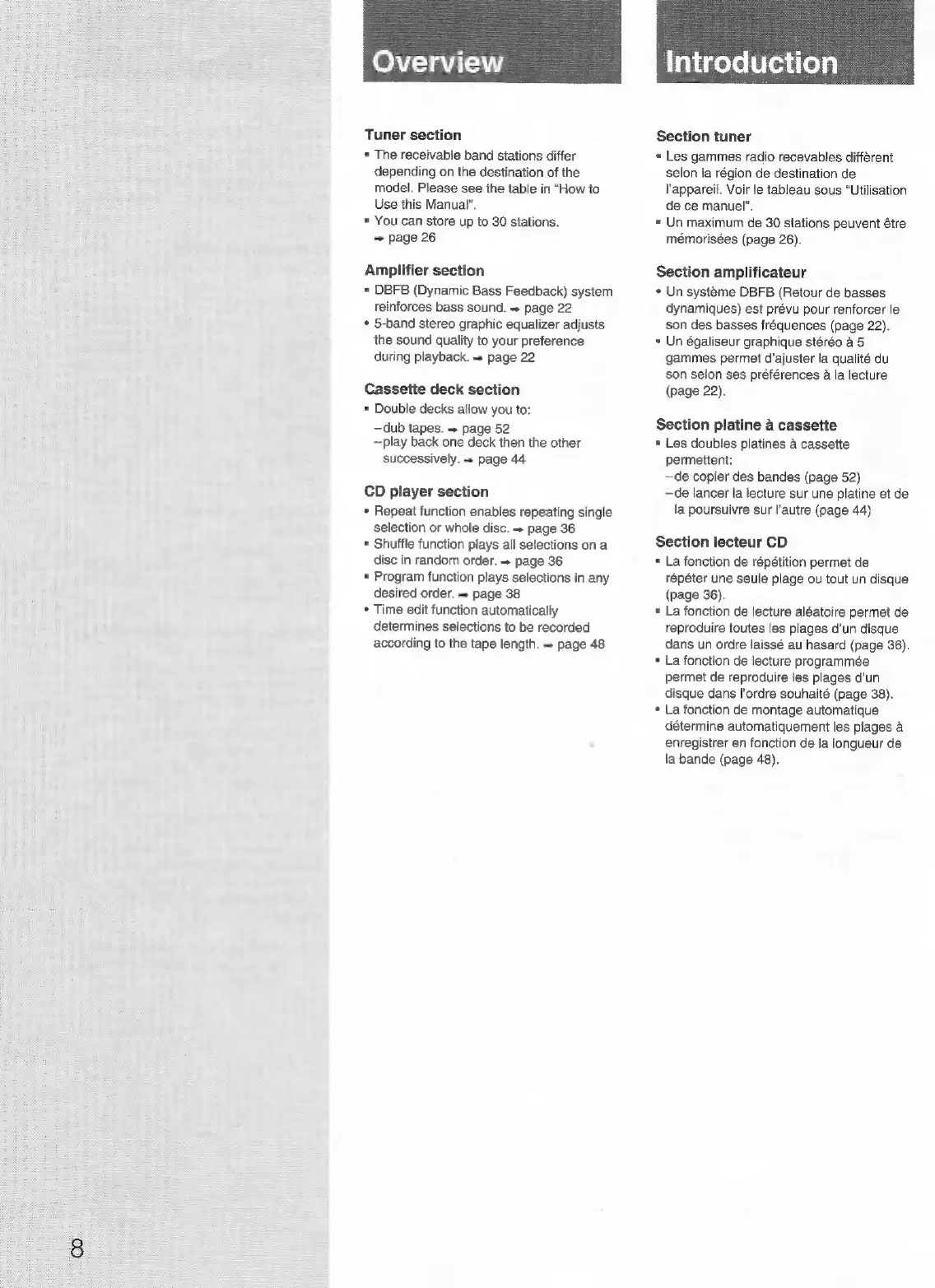 Sony FH-B150 - Overview; Tuner section; Amplifier section; Cassette deck section