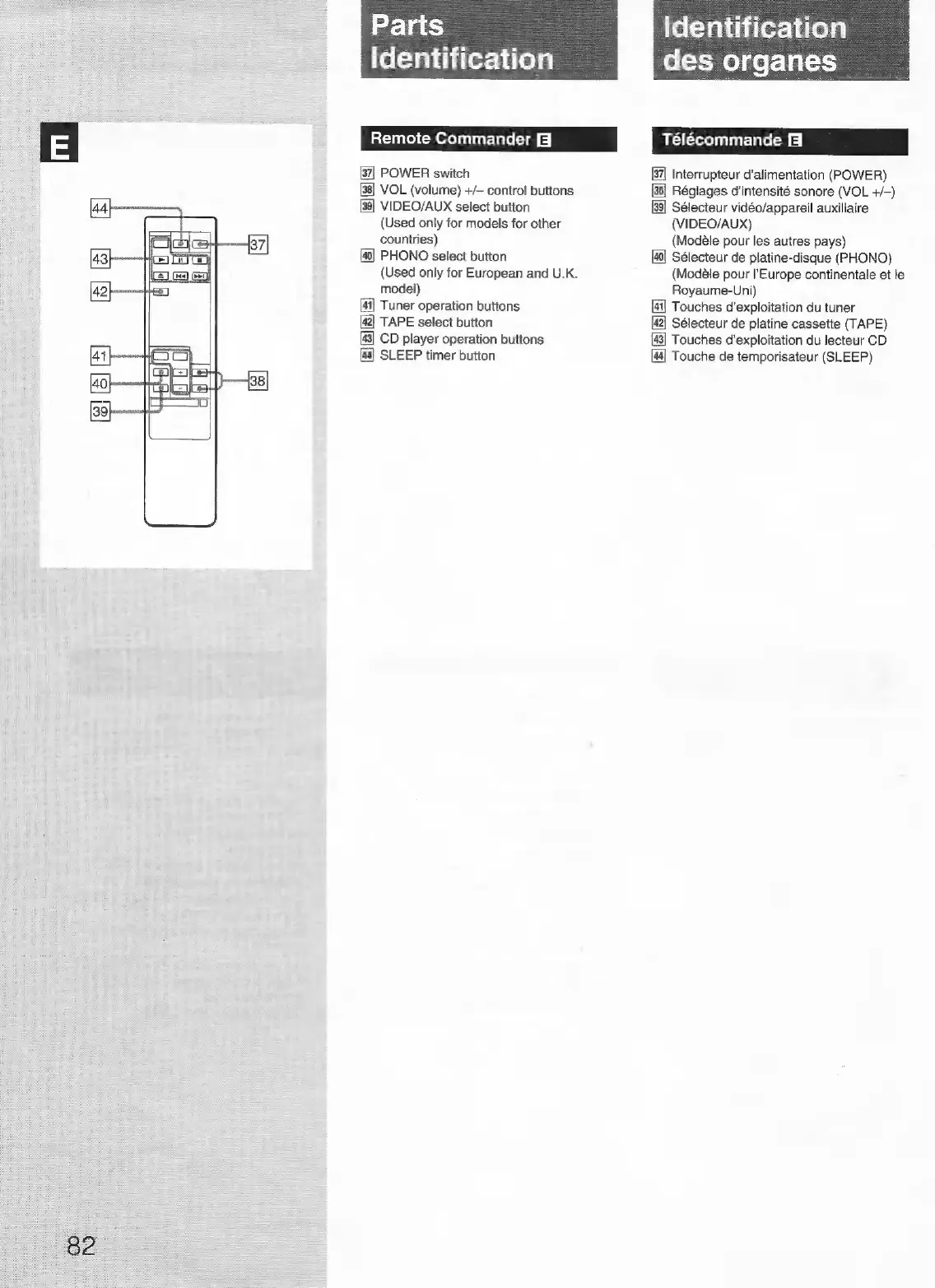 Sony FH-B150 - Remote Commander; POWER switch; VOL (volume) +;- control buttons; VIDEO;AUX select button