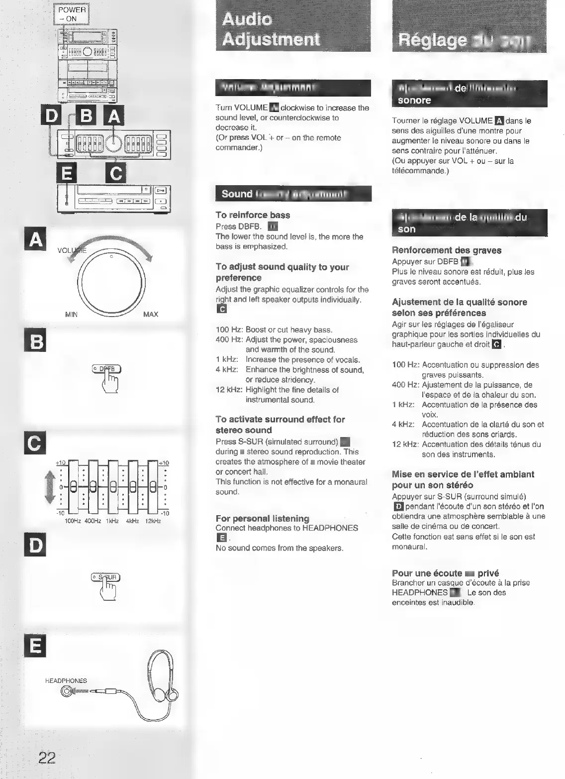 Sony FH-B155 - Audio Adjustment; To adjust sound quality to your preference; To activate surround effect for stereo sound