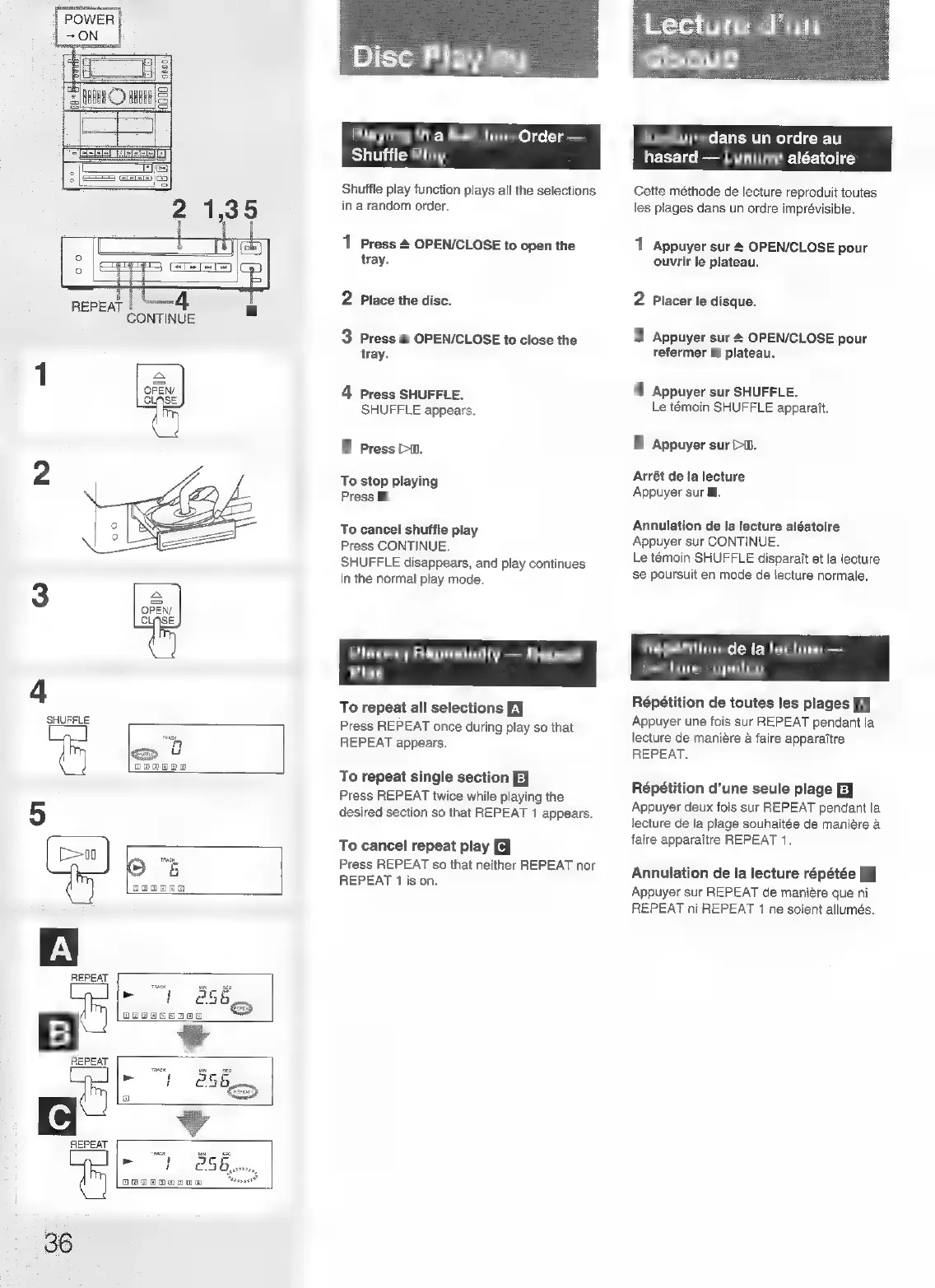 Sony FH-B155 - Shuffle Play; To repeat all selections; To repeat single section