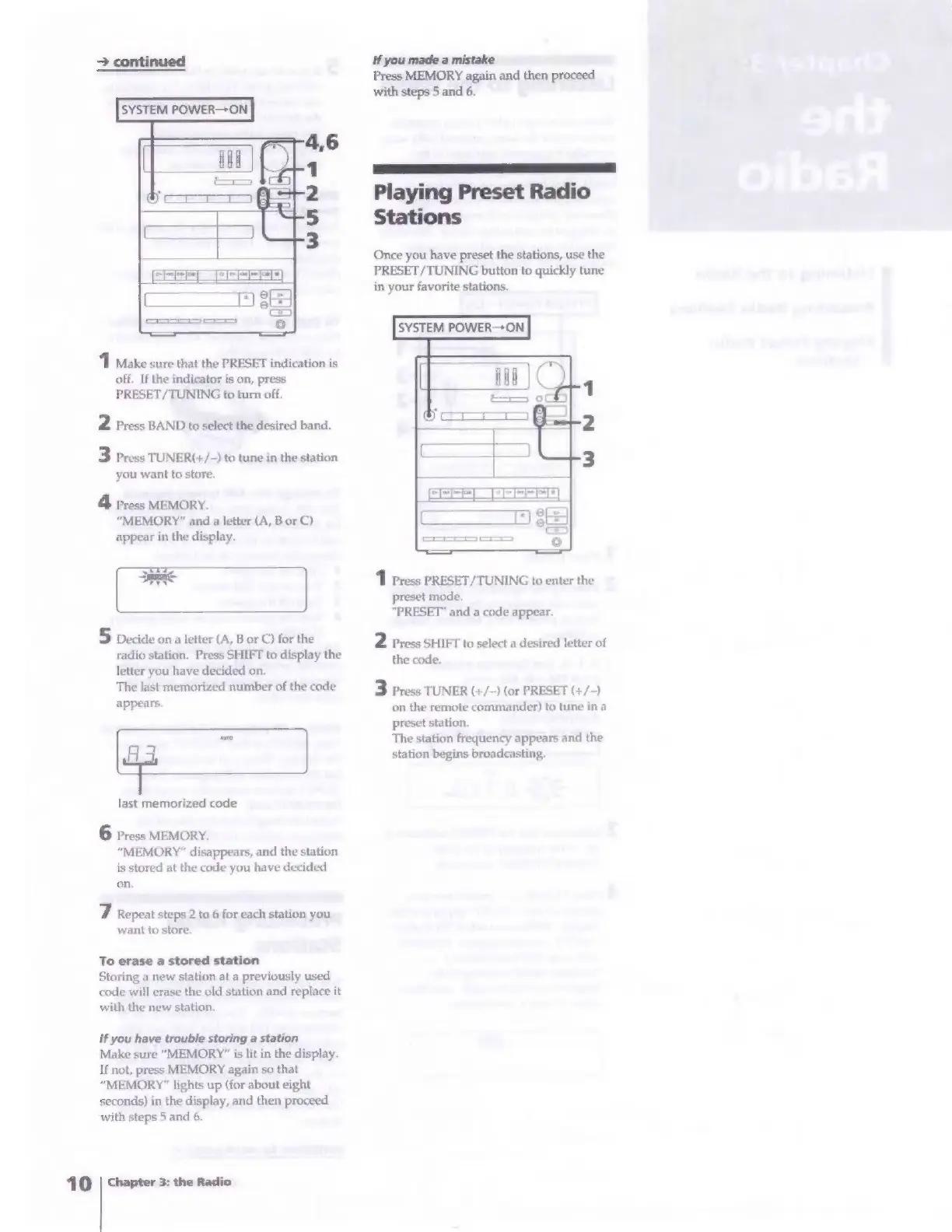 Sony FH-B411 - Presetting Radio Stations; Playing Preset Radio Stations
