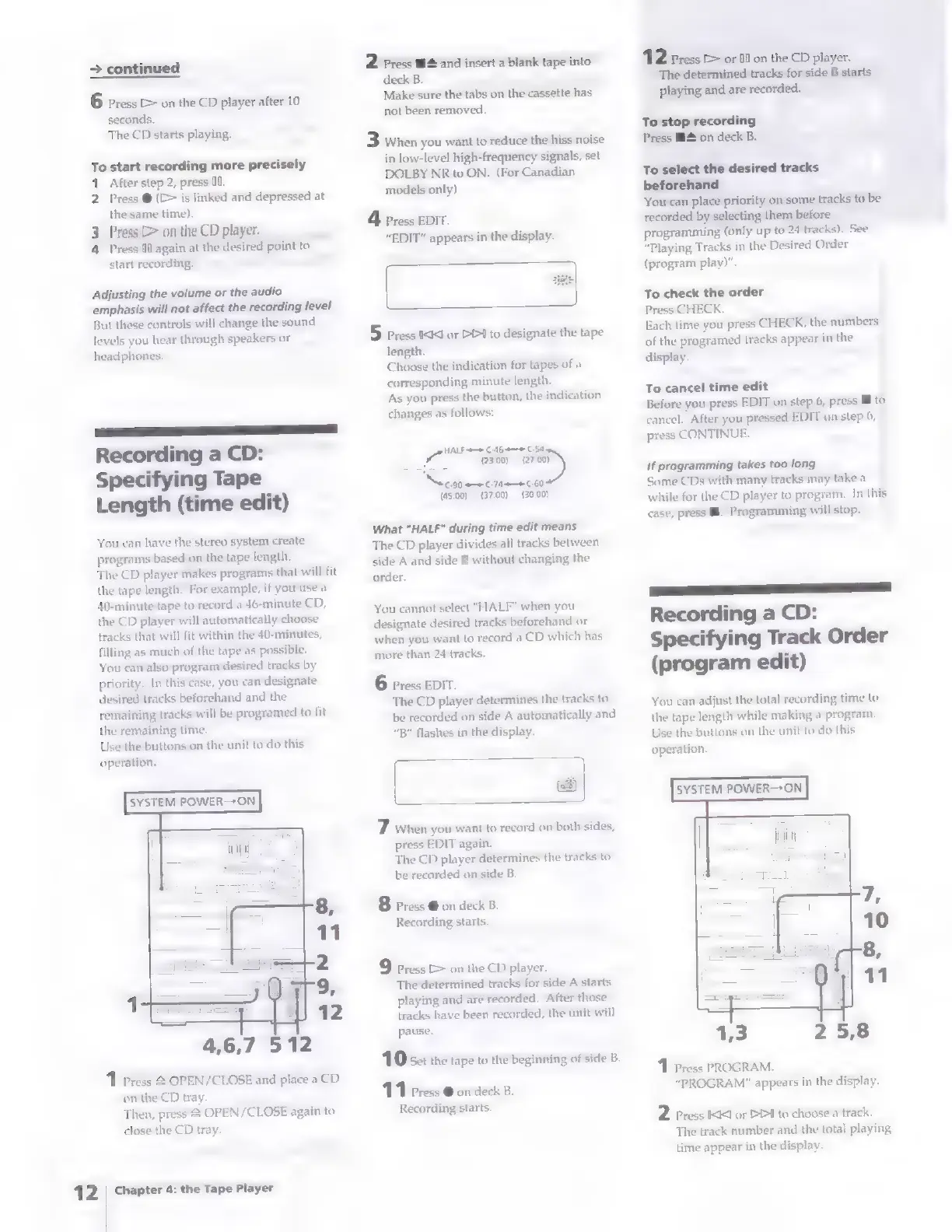 Sony FH-B411 - Recording CD: Specifying Tape Length; Recording CD: Specifying Track Order