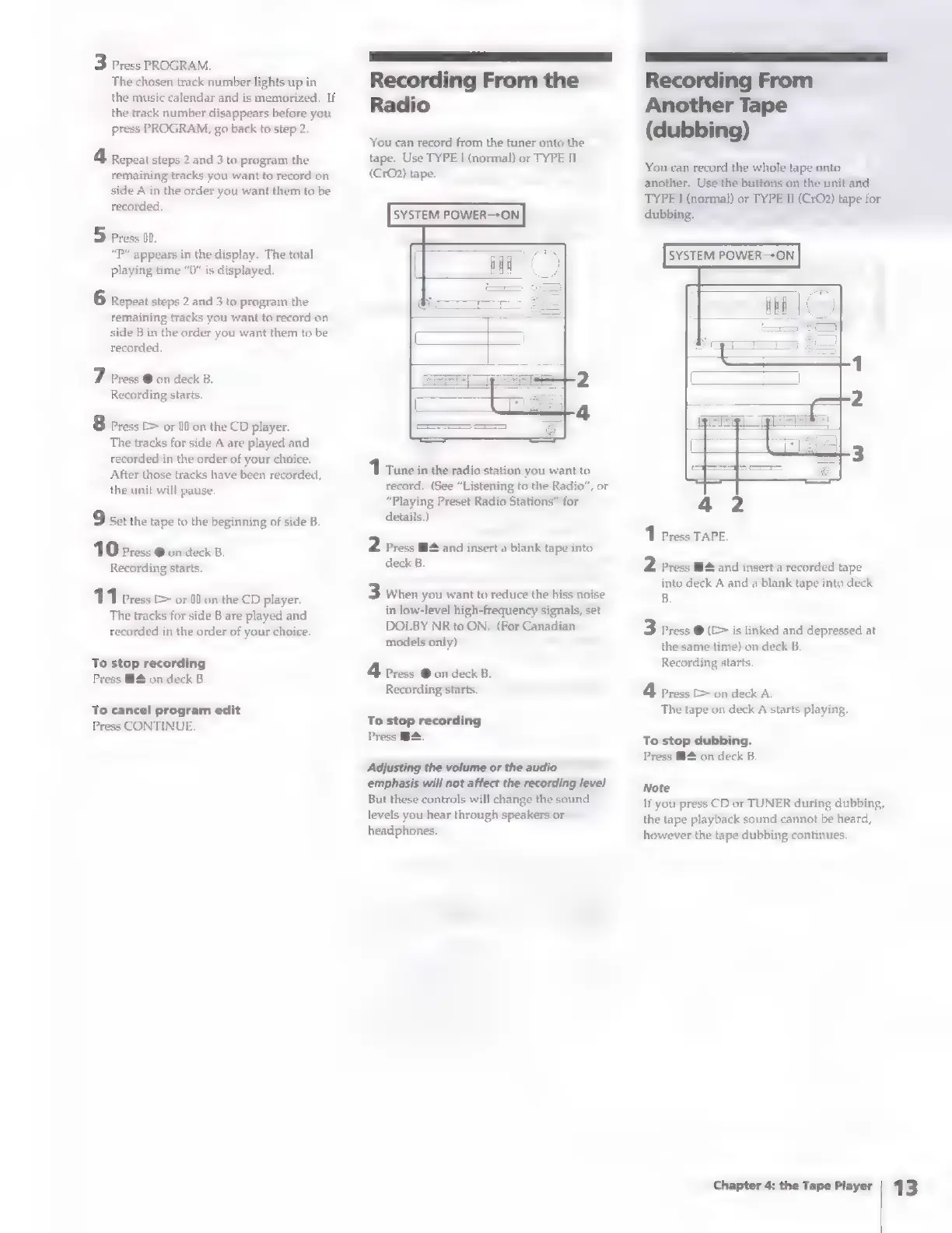 Sony FH-B411 - Recording From the Radio; Recording From Another Tape (Dubbing)