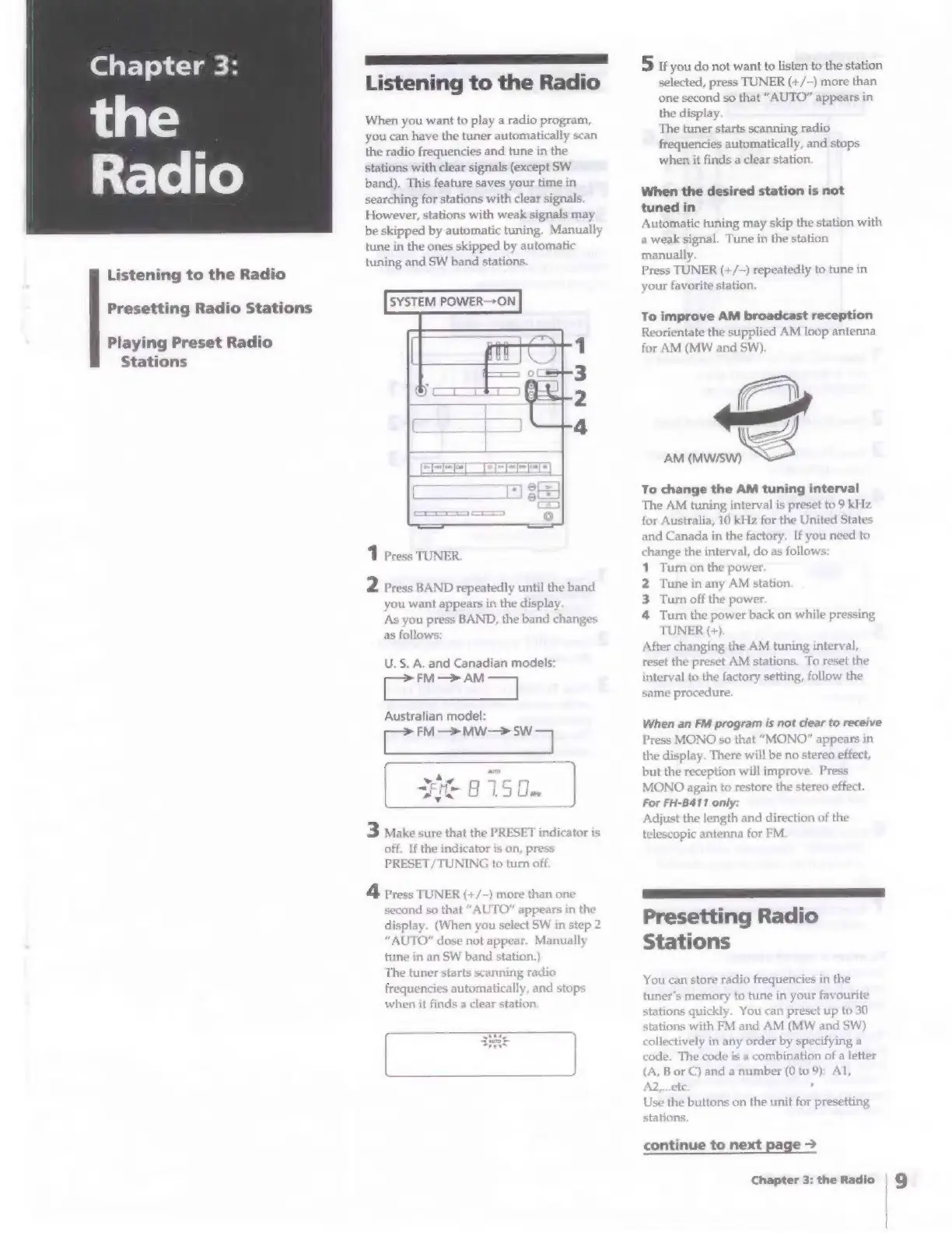 Sony FH-B411 - Radio Operations; Listening to the Radio