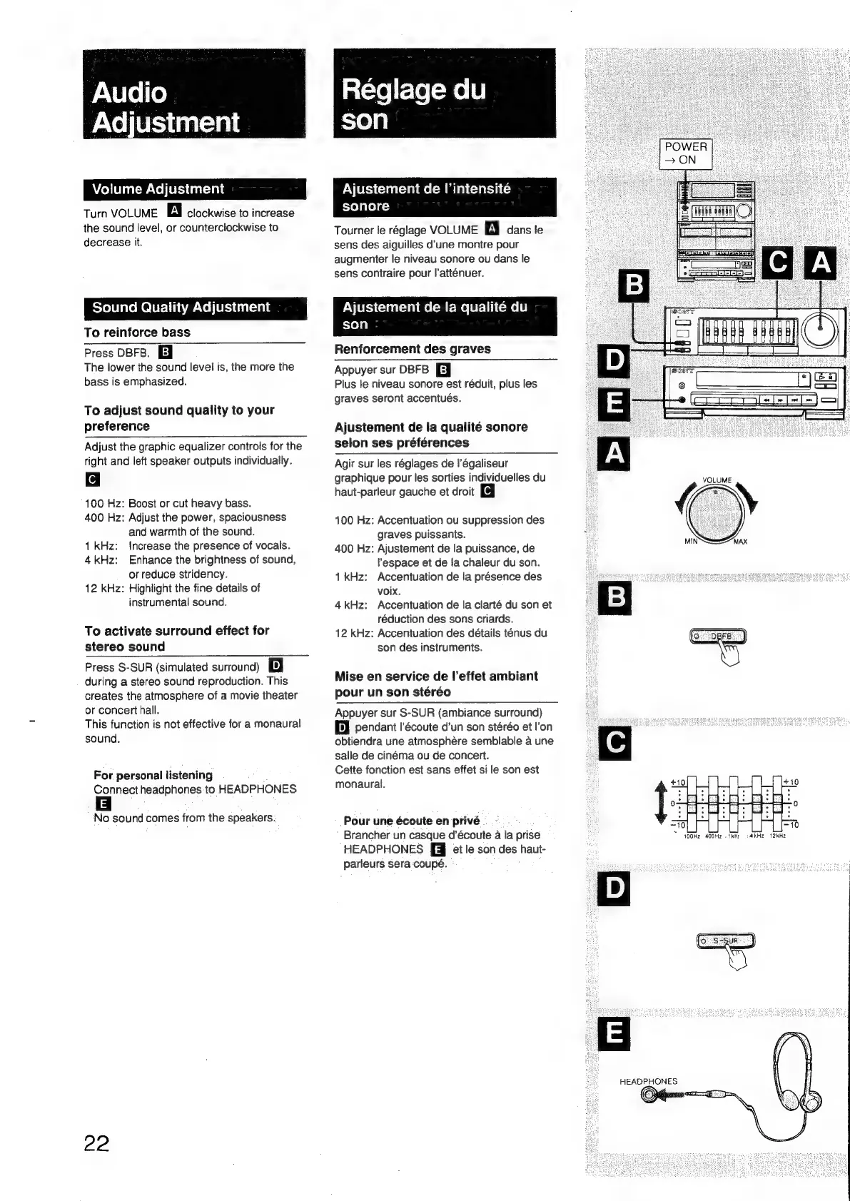 Sony FH-B55CD - Audio Adjustment; Volume Adjustment; Sound Quality Adjustment