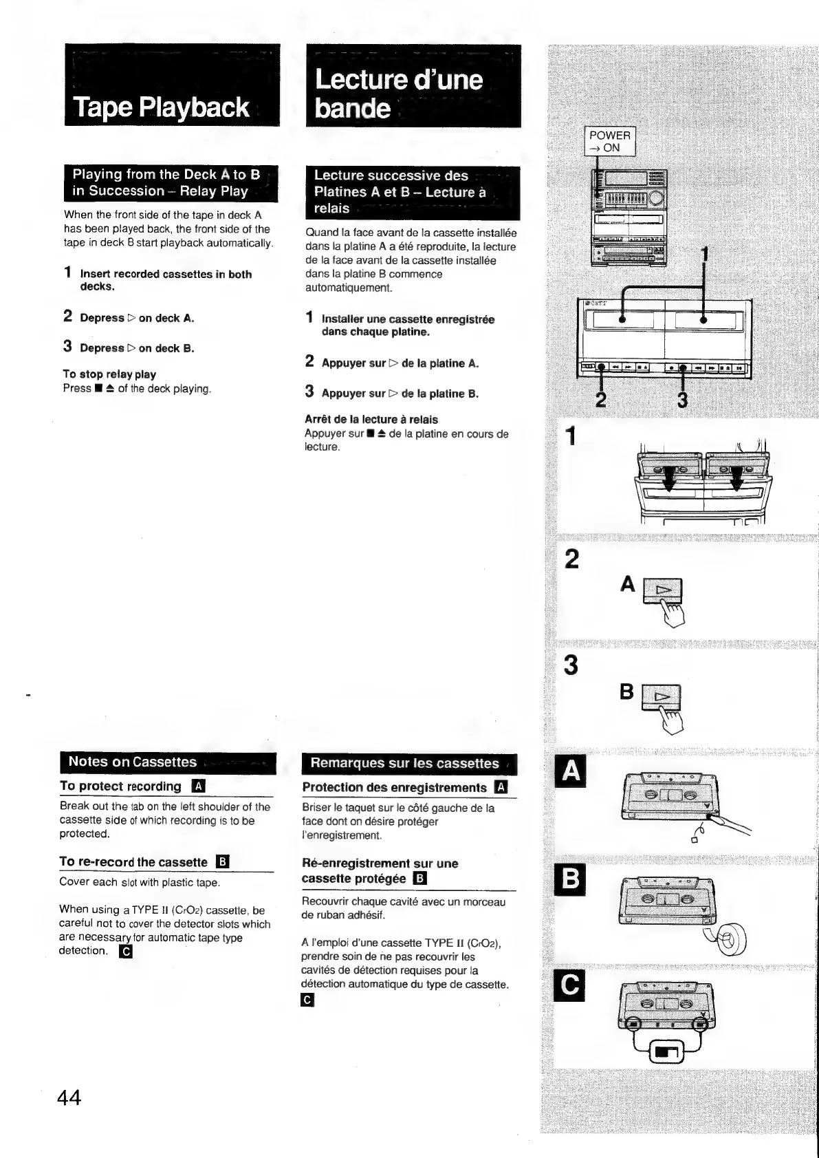 Sony FH-B55CD - Tape Playback; Playing from the Deck A to B in Succession - Relay Play
