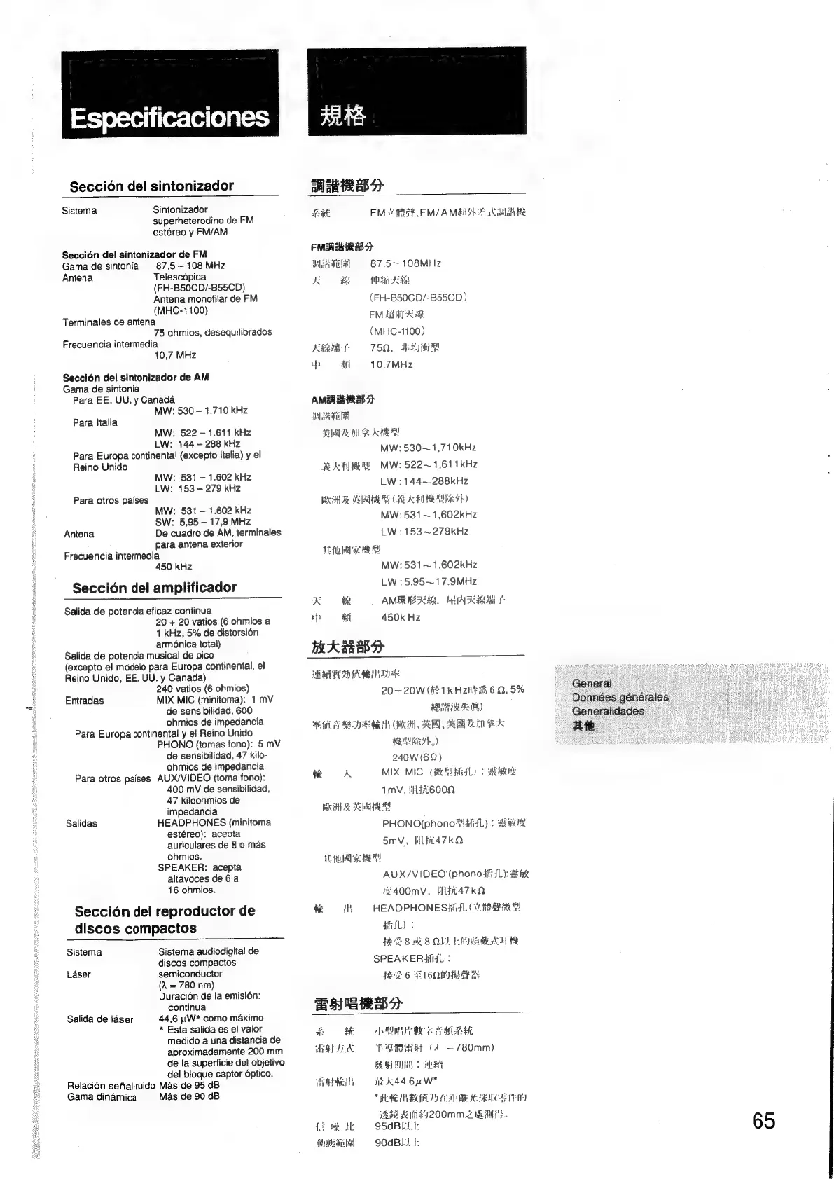 Sony FH-B55CD - Especificaciones 0
