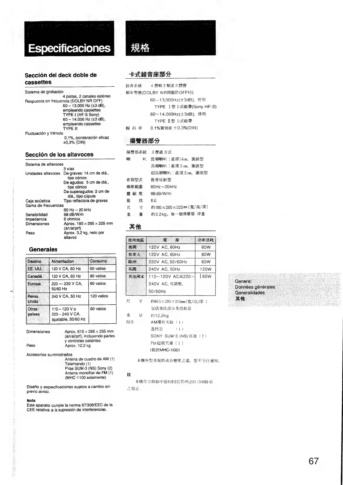 Especificaciones