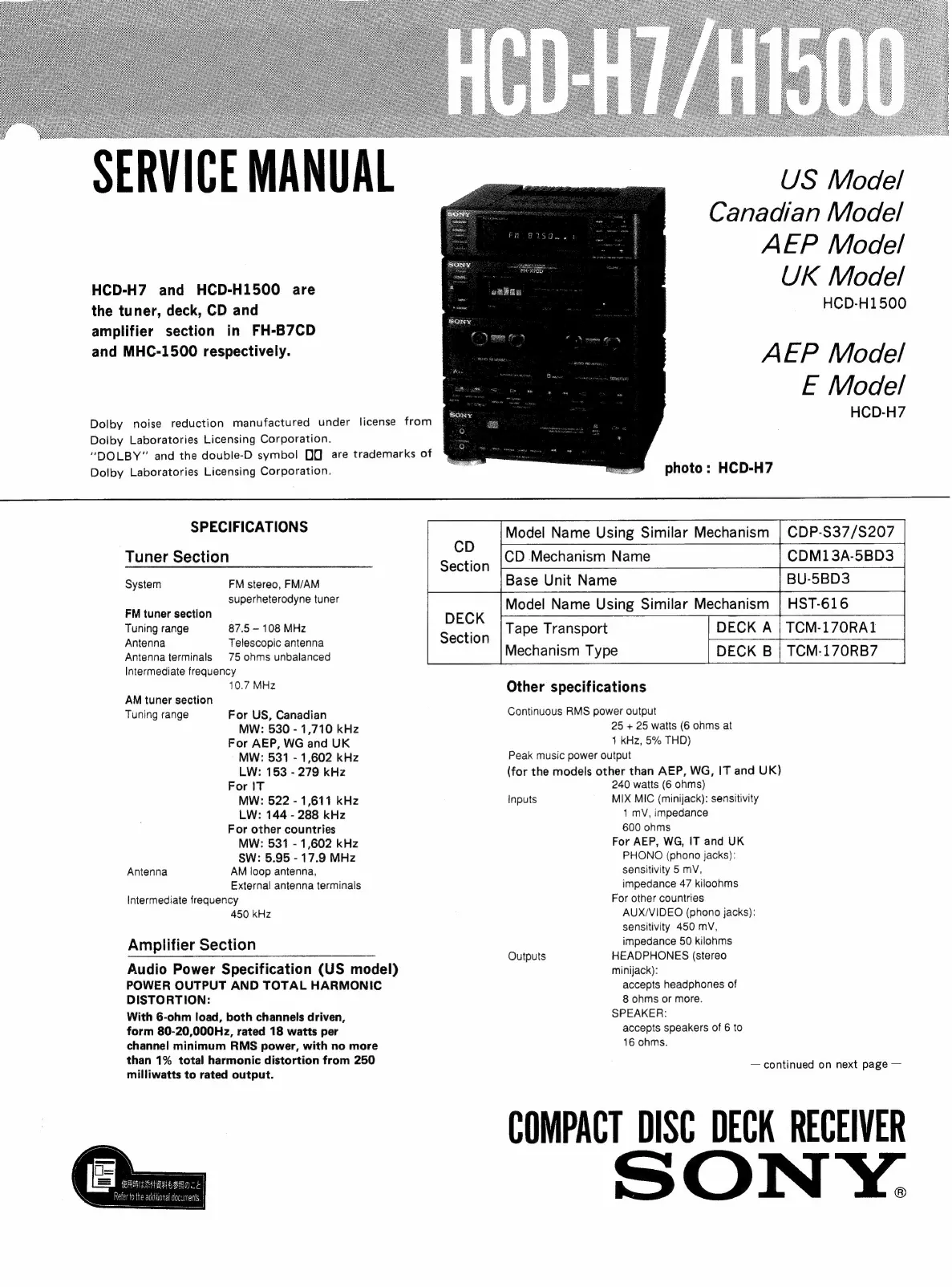 Sony FH-B7CD - Default Chapter; Table of Contents