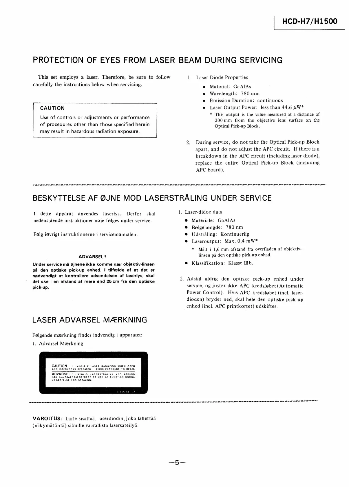 Sony FH-B7CD - 1 Servicing Notes; Parts Identifications; 2 General