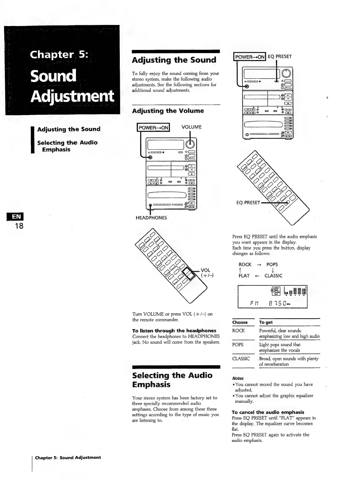 Sony FH-C33X - Adjusting the Volume; Selecting the Audio; Chapter 5: Sound Adjustment