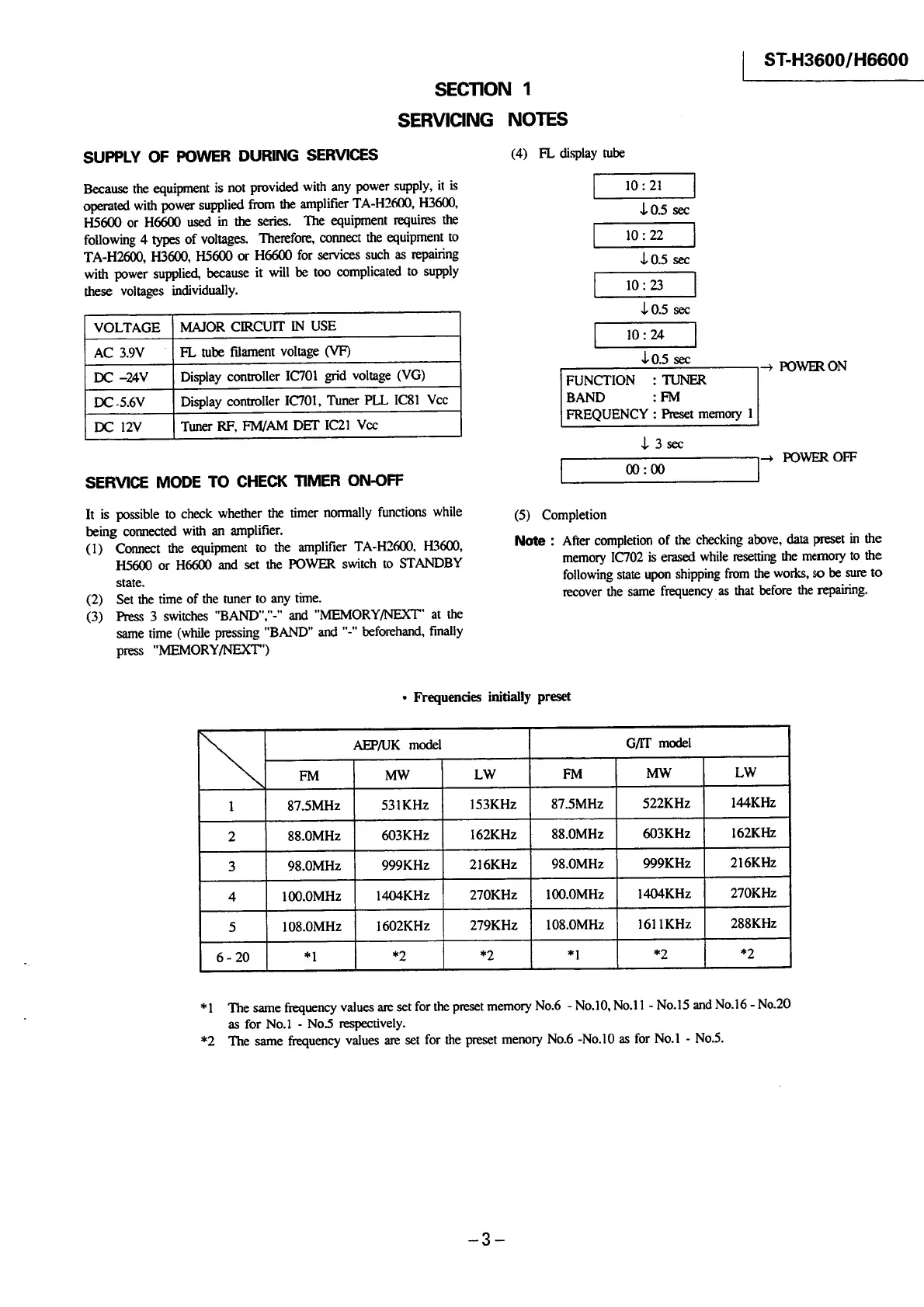 Sony FH-E737CD - ST-H3600;H6600 - Servicing Notes