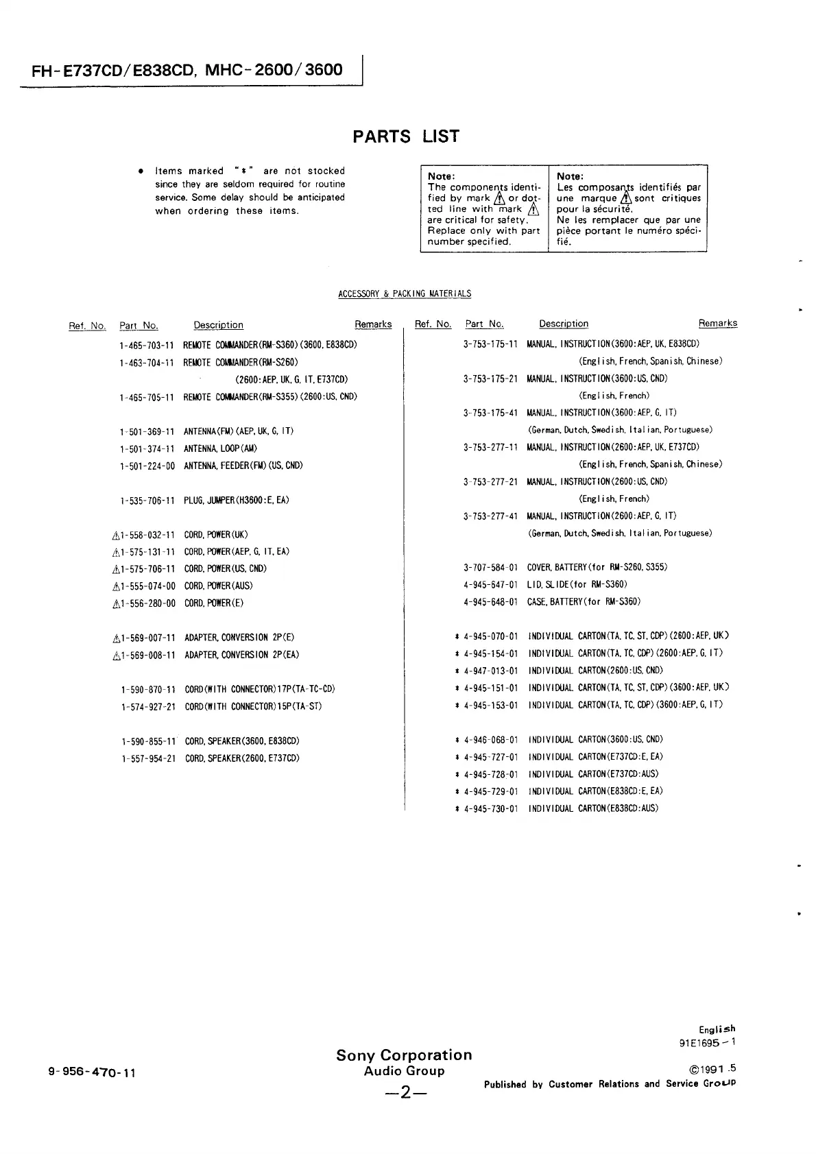 Other manuals for Sony FH-E737CD