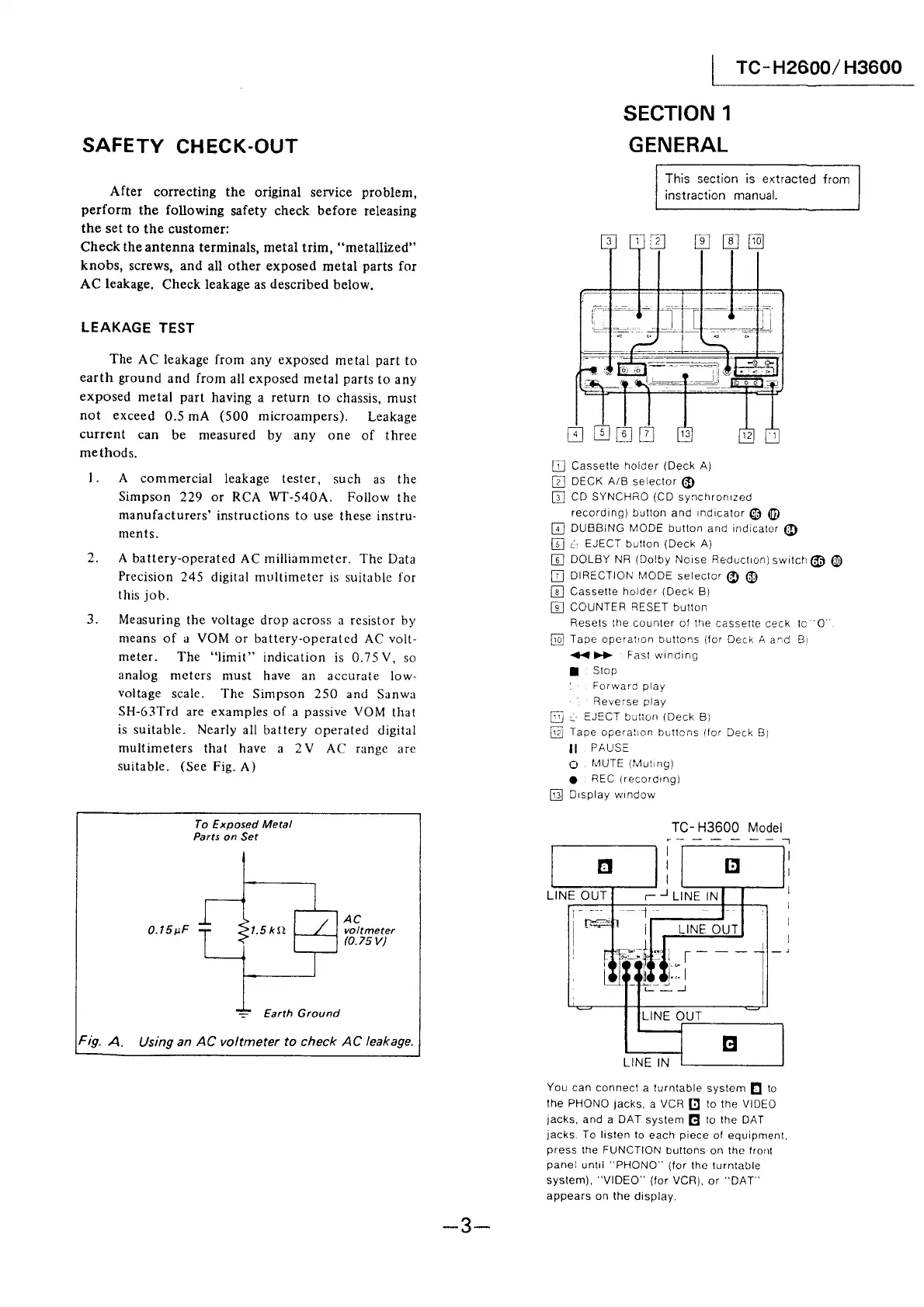 Sony FH-E737CD - General Information; Safety Check-Out; Leakage Test