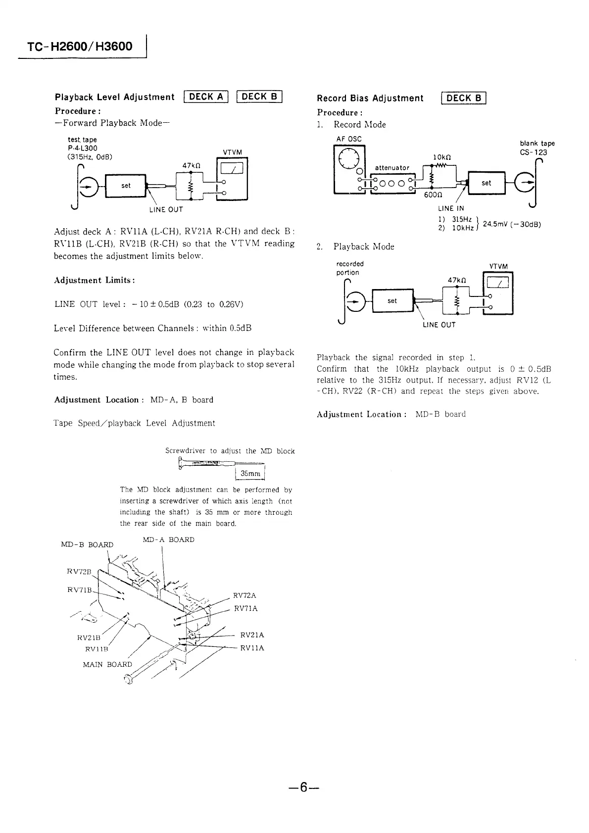 Sony FH-E737CD - Playback Level Adjustment; Record Bias Adjustment