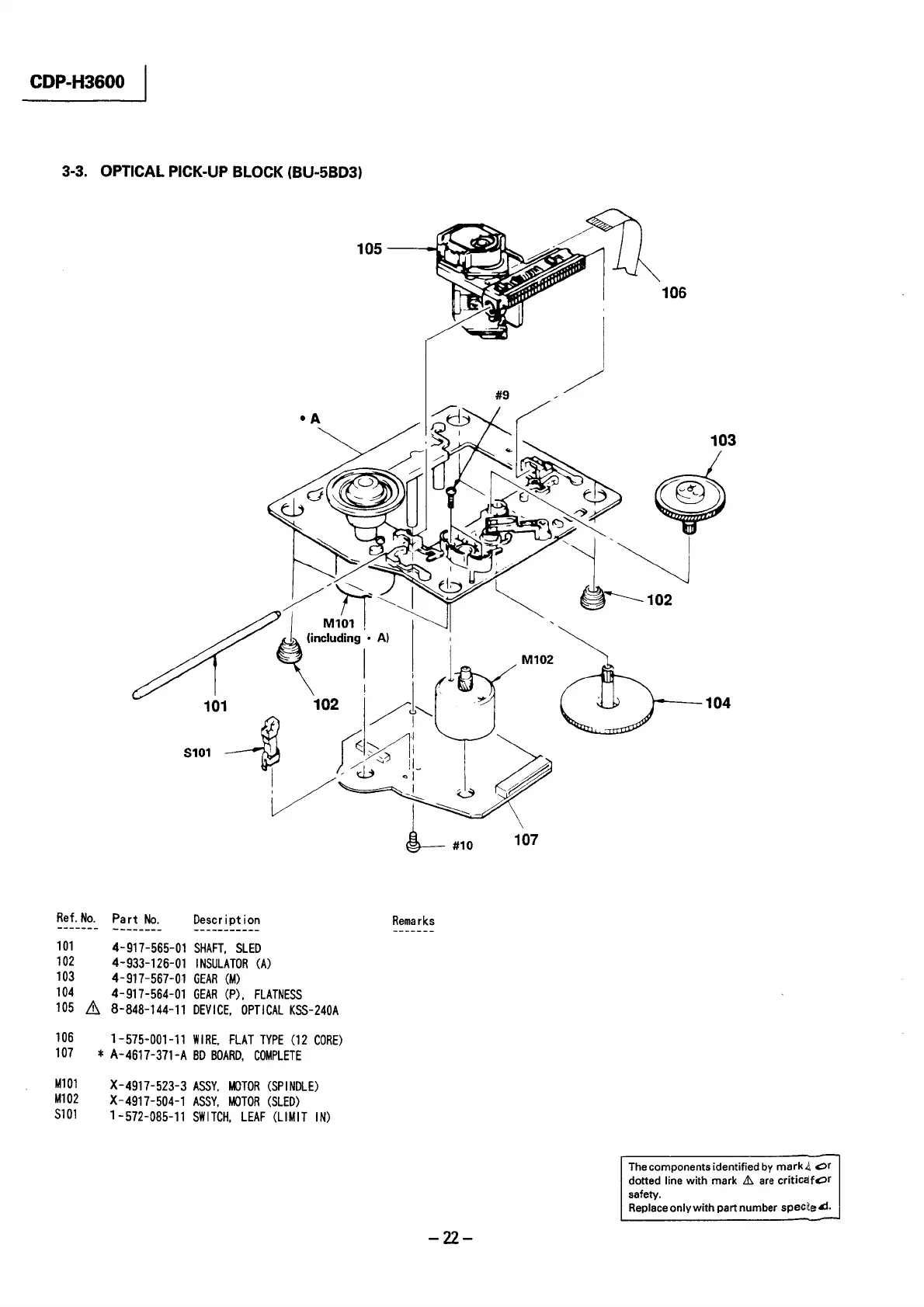 Sony FH-E737CD - Optical Pick-Up Block - BU-5 BD3 Exploded View