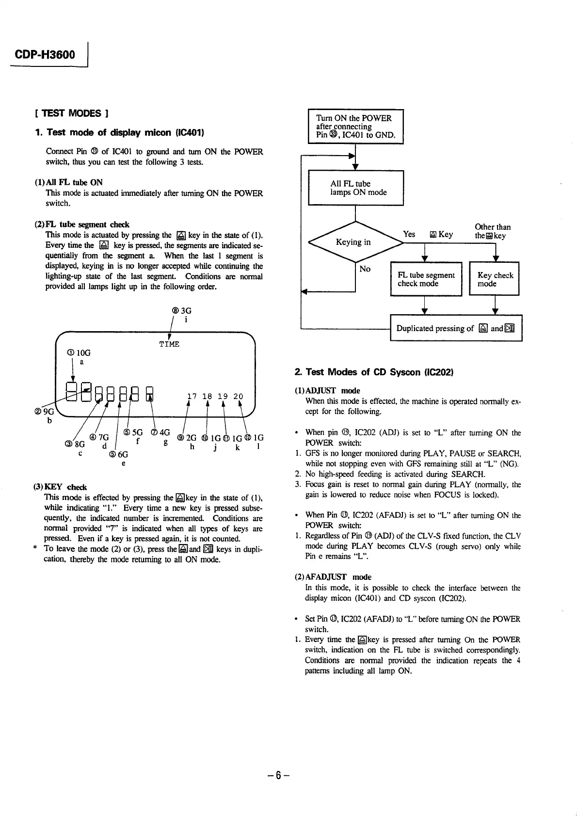 Sony FH-E838CD - Test Mode on Display Micon - IC401; Test Modes of CD Syscon - IC202